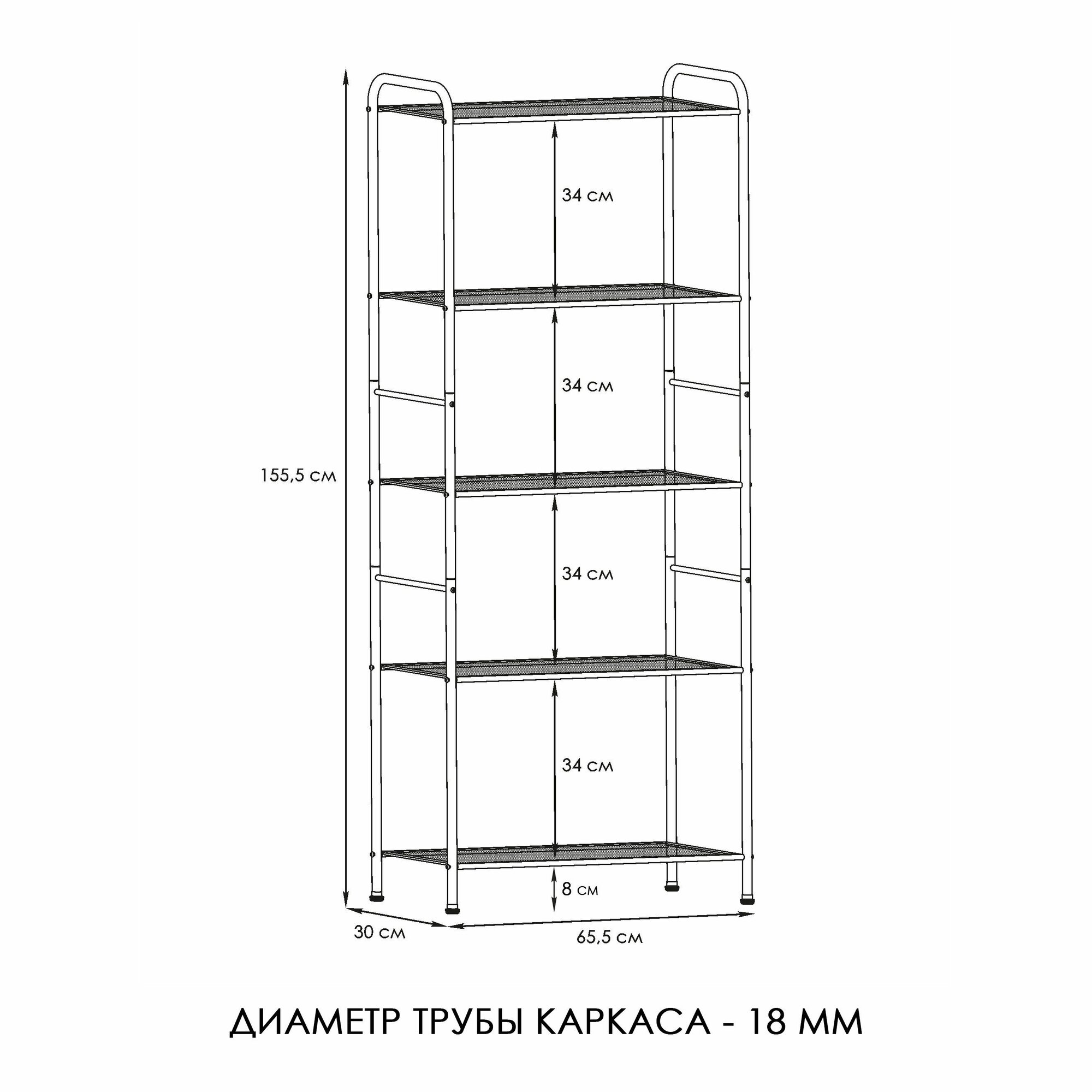 Стеллаж Валенсия 25 (графит) 65,5*30*155,5см, 5 сетчатых полок (до 8кг каждая) СТВ25Гр ЗМИ (арт. 843091)