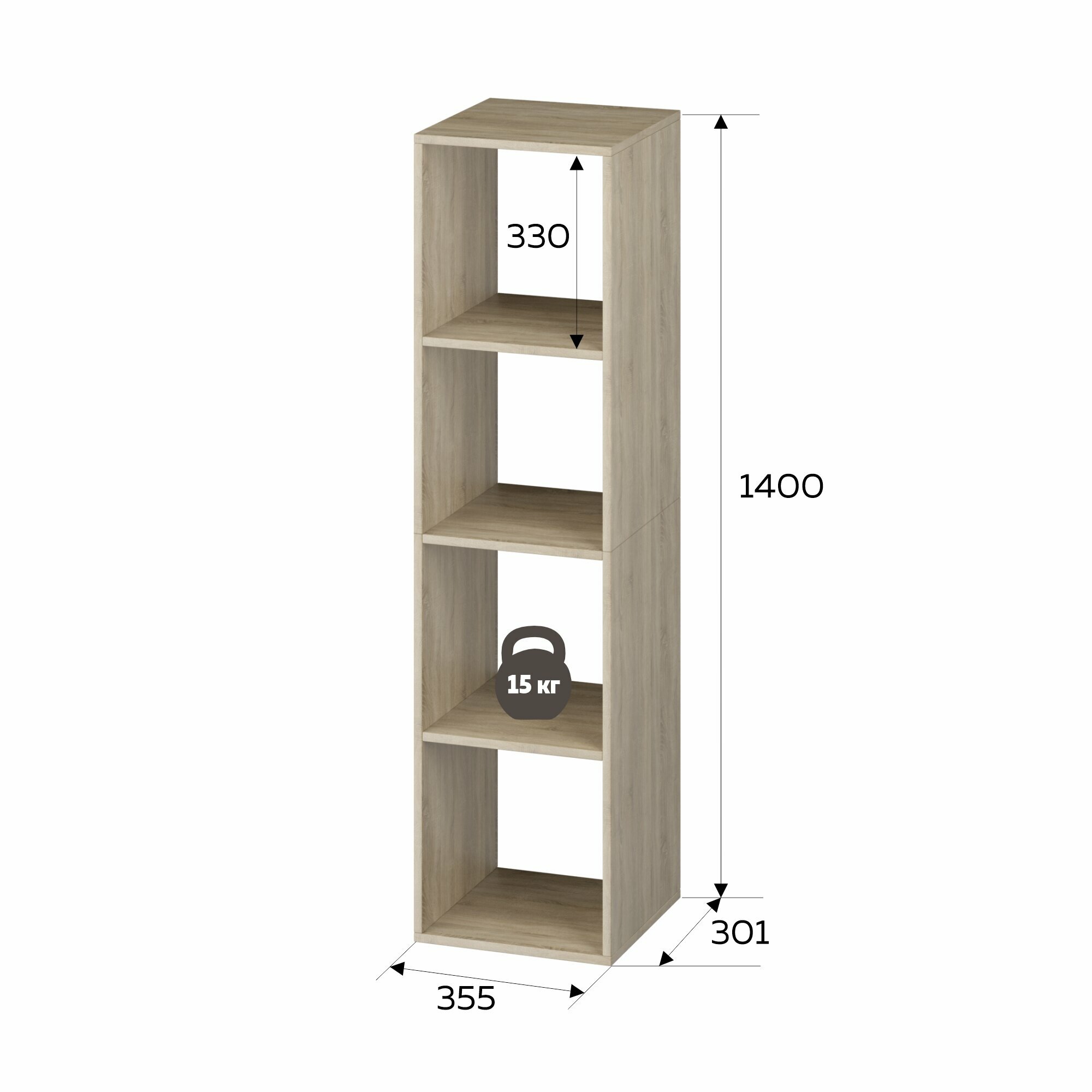 10 цен на Стеллаж Ник 4 ячейки 35.5х30.1х140, Мебельная компания Е1, Сонома