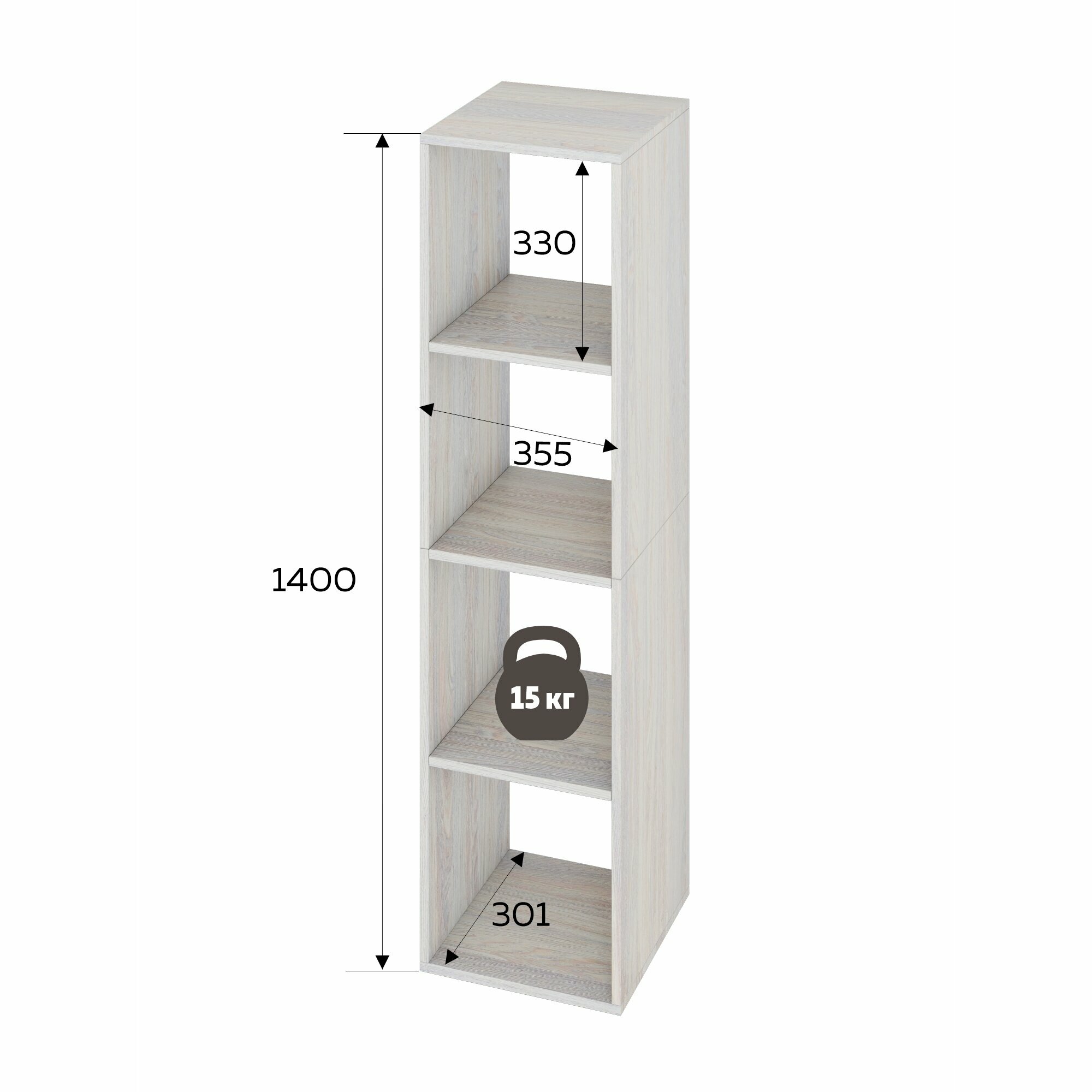 Стеллаж Ник 4 ячейки 35.5х30.1х140, Мебельная компания Е1, Ясень Анкор Светлый информация: