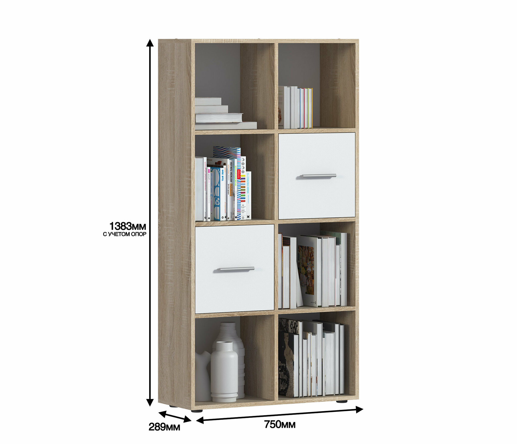Стеллаж столплит Мамбо СБ-3214 с 8 полками, с 2 дверцами дуб сонома, белый 75х144х28 см информация:
