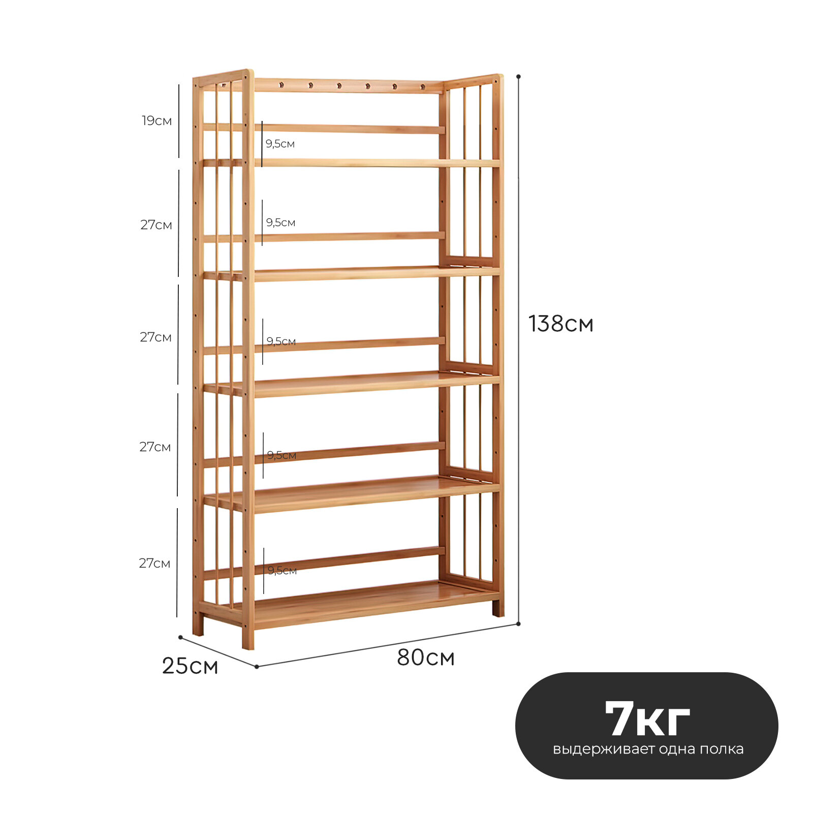 Стеллаж деревянный 5 полок, 138х80х25 см Hans&Helma из бамбука универсальная этажерка для игрушек, книг, дача информация: