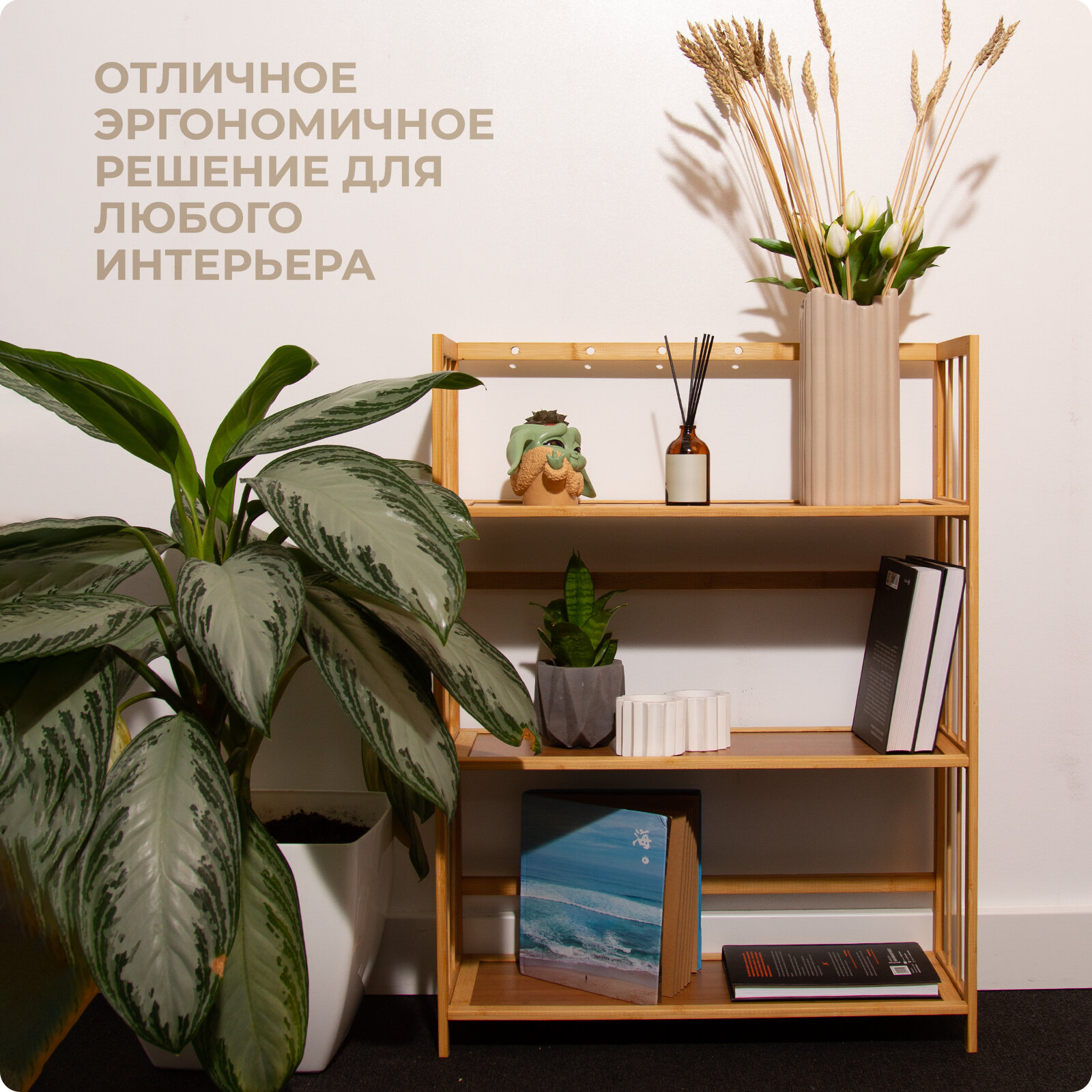 10 цен на Стеллаж деревянный 3 полки, 82х60х25 см Hans&Helma из бамбука универсальная этажерка для игрушек, книг, дача