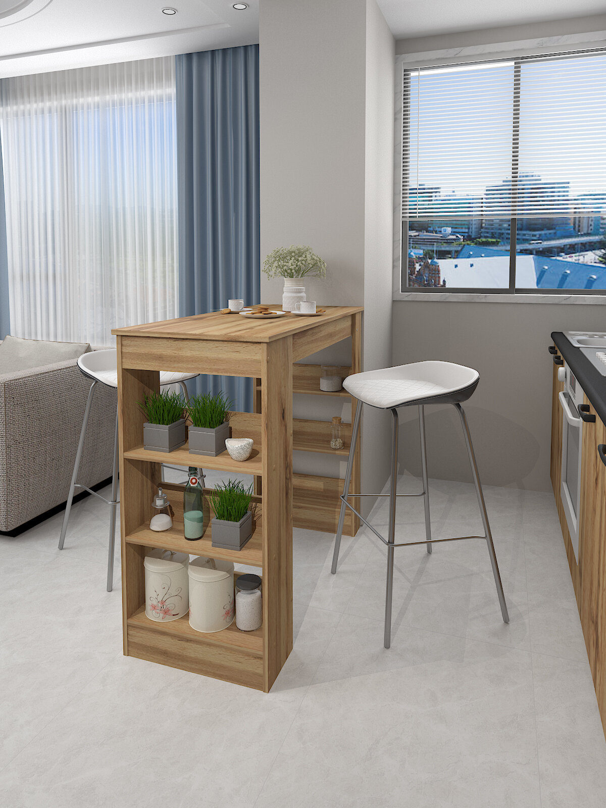 Стол обеденный №5 барный кухонный письменный с полками ЛДСП 110х50х100.4см молокай серый
