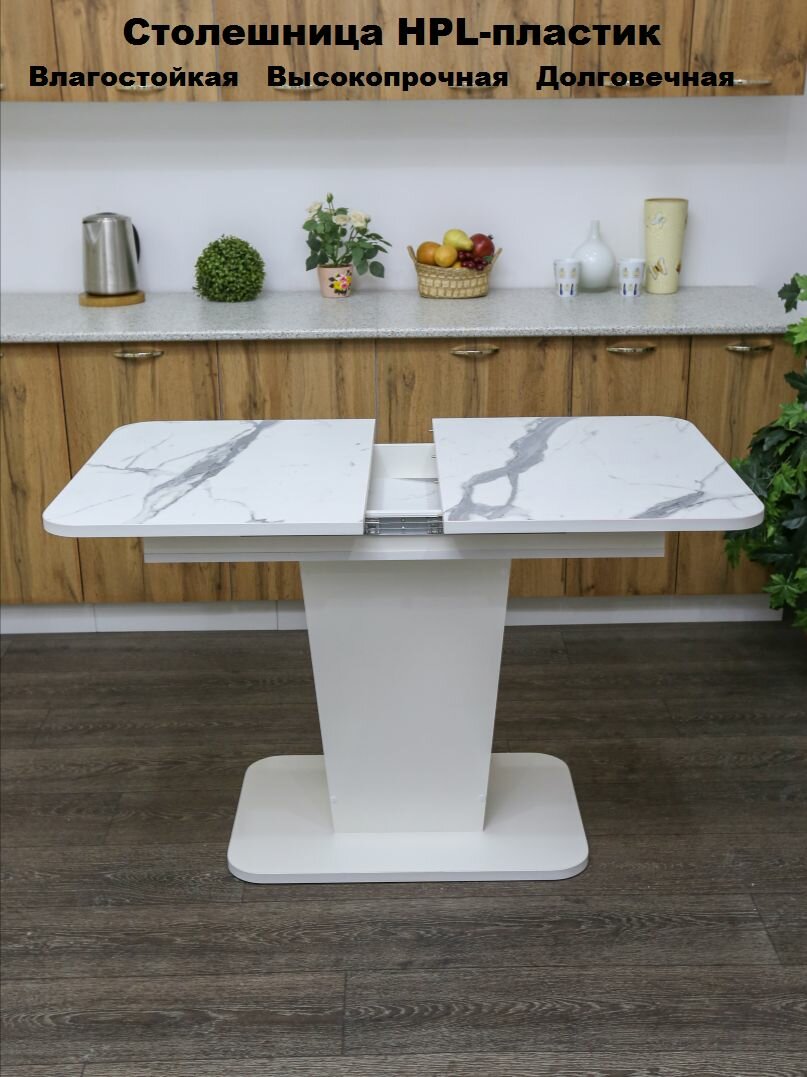 10 цен на Стол кухонный раздвижной на одной ножке Позитив 1080(1370)*680*770 пластик белый мрамор, стол обеденный