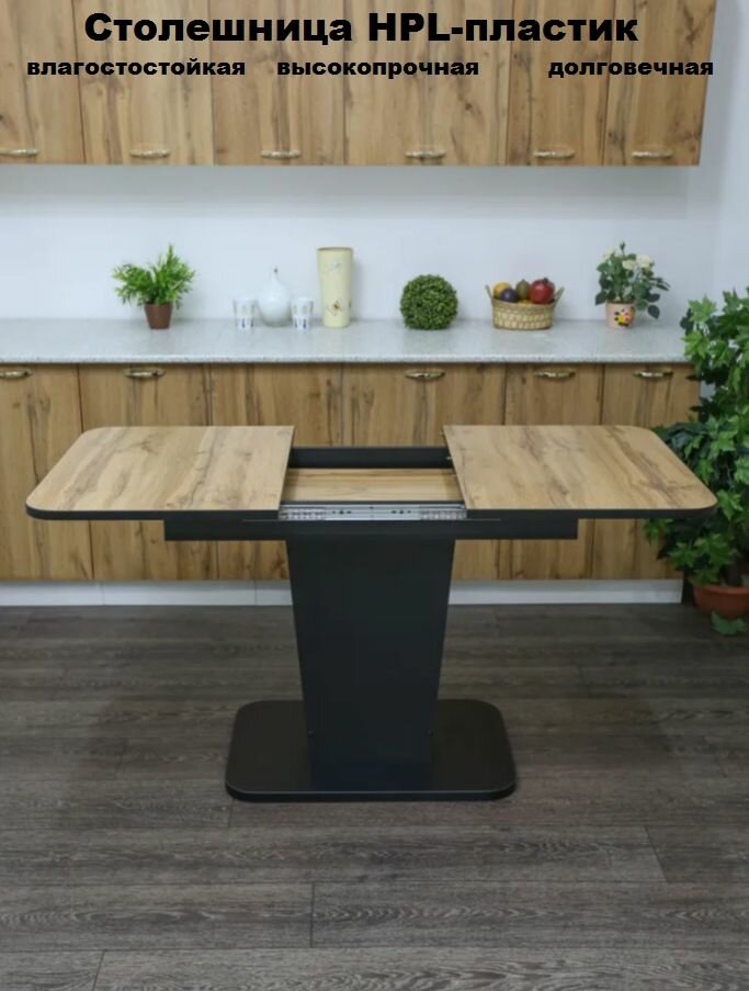 Стол кухонный раздвижной на одной ножке Грант 1080 (1370)*680*770 пластик дуб вотан черный / стол обеденный / стол кухонный раскладной