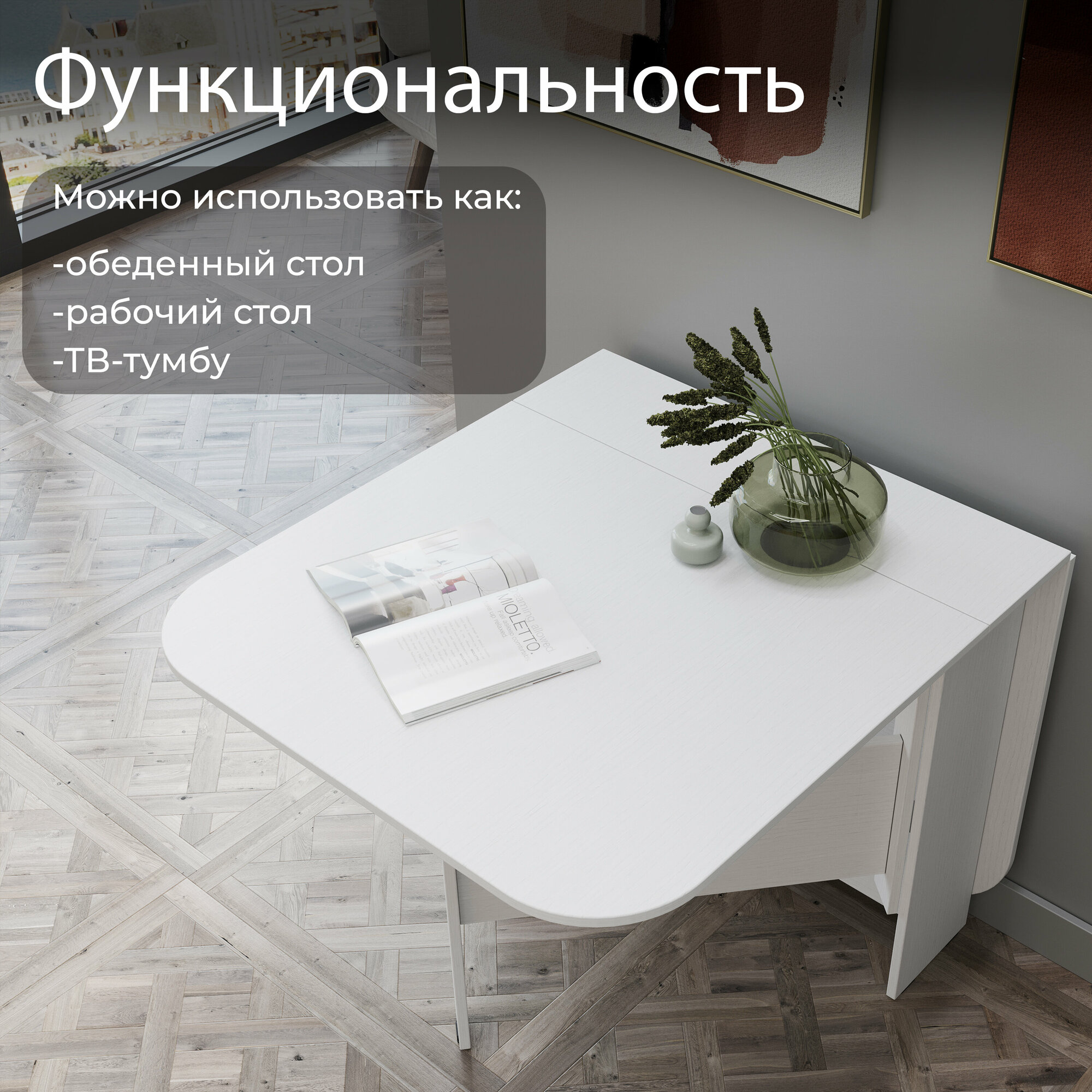 Отзывы на Стол-книжка раскладной, стол обеденный книжка белый, (ВхДхГ) 75х160х80 см, Тип 1
