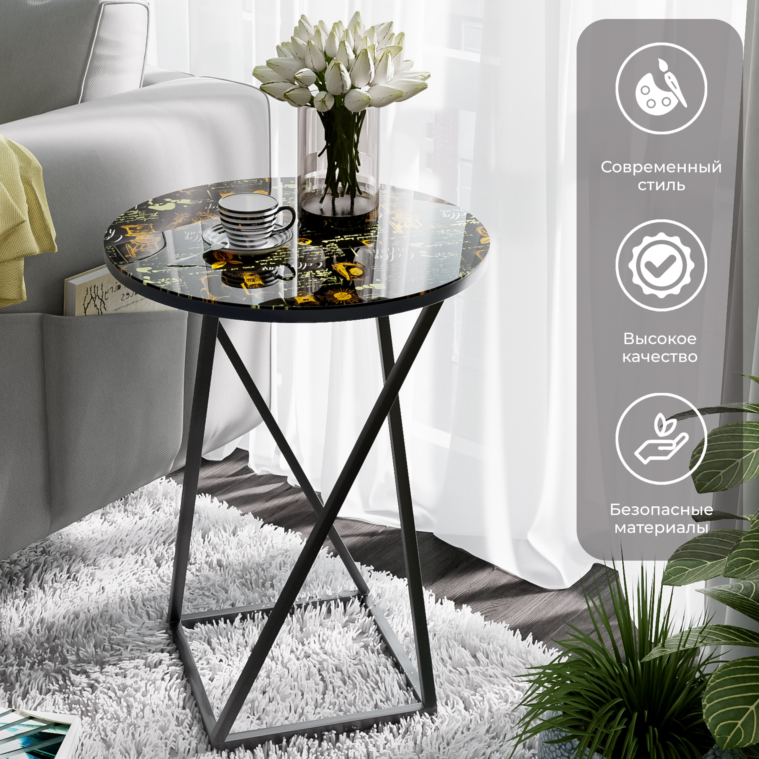 Отзывы на Столик журнальный круглый со стеклянной поверхностью черный, кофе ДП 1-03-05