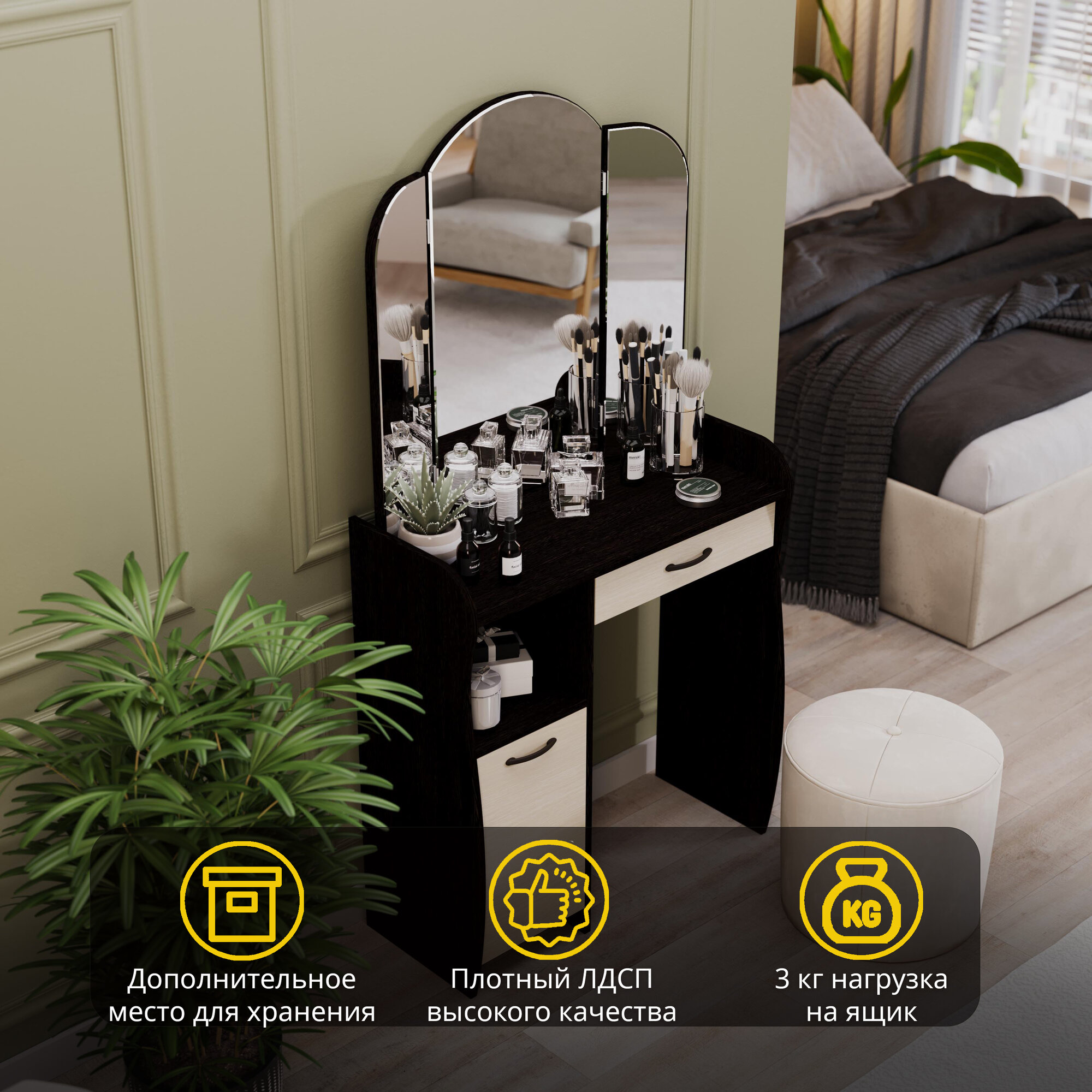 Туалетный столик, трюмо, гримерный столик с ящиком и полками коричневый (ВхДхГ) 152х79х33, София Т1 информация: