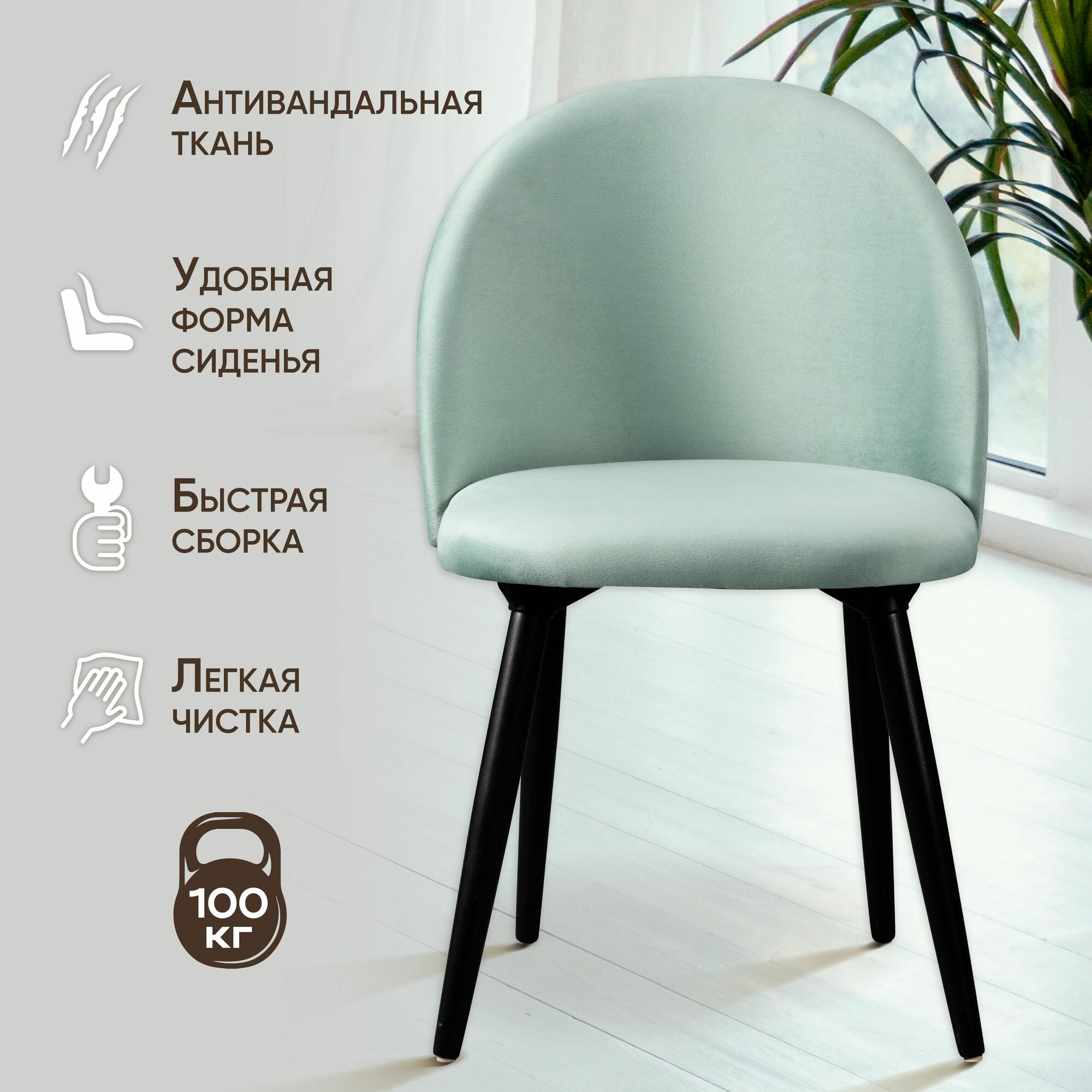 10 цен на Мягкий стул кухонный со спинкой Лори, ножки деревянные, обеденный для кухни, гостиной, для дома, обивка вельвет мятный, АМИ мебель, Беларусь