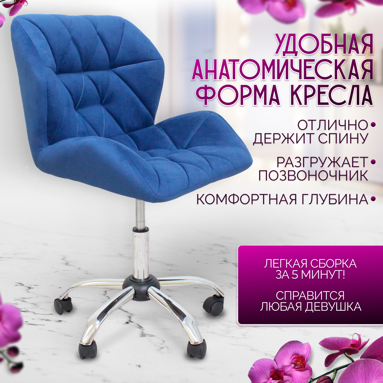Отзывы на Стул со спинкой, Ракушка, большой, FitBest, велюр, хром, колеса, синий