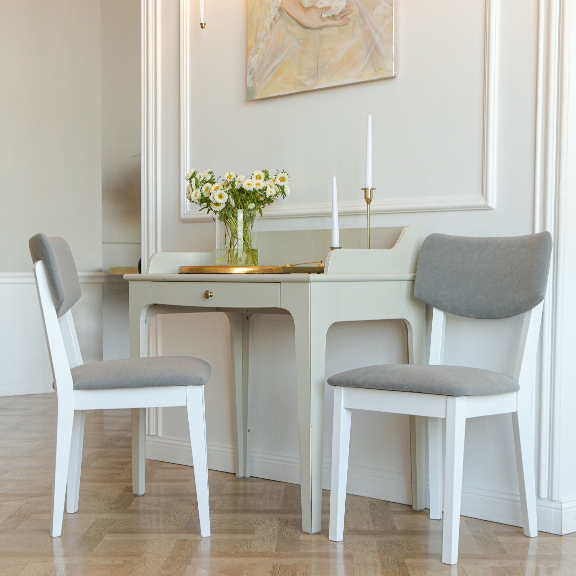 Стулья для кухни деревянные, мягкий, со спинкой Орион белый, велюр серый, комплект 2 стула. 13 345 ₽