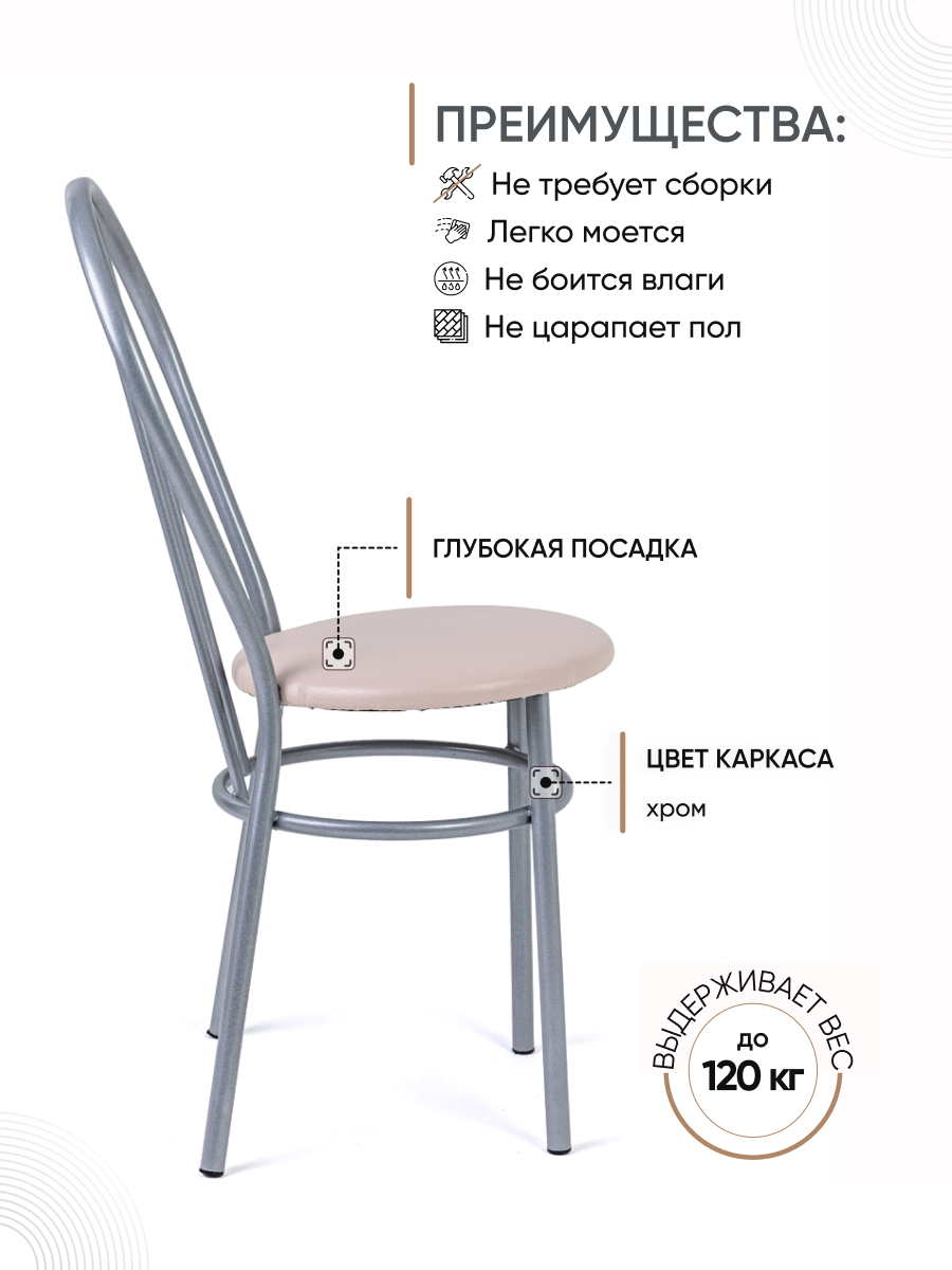 Стулья кухонные металлические со спинкой, экокожа 2 шт, цвет бежевый 4 608 ₽
