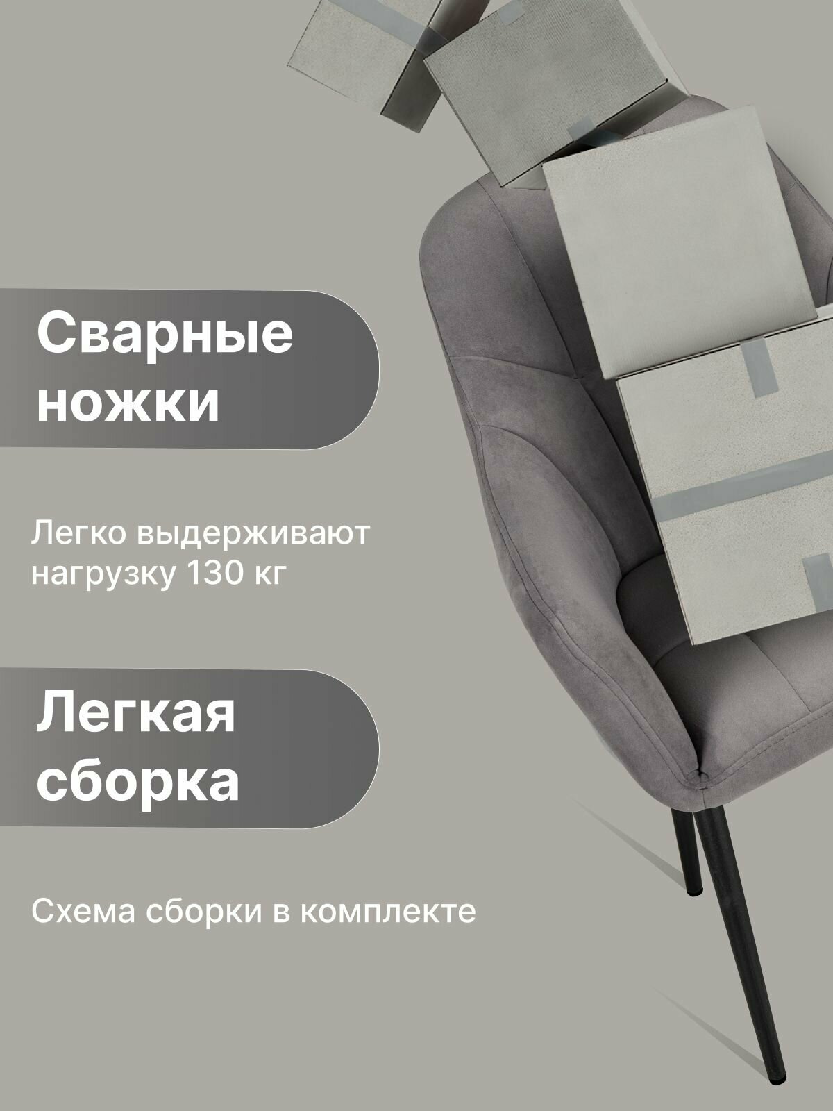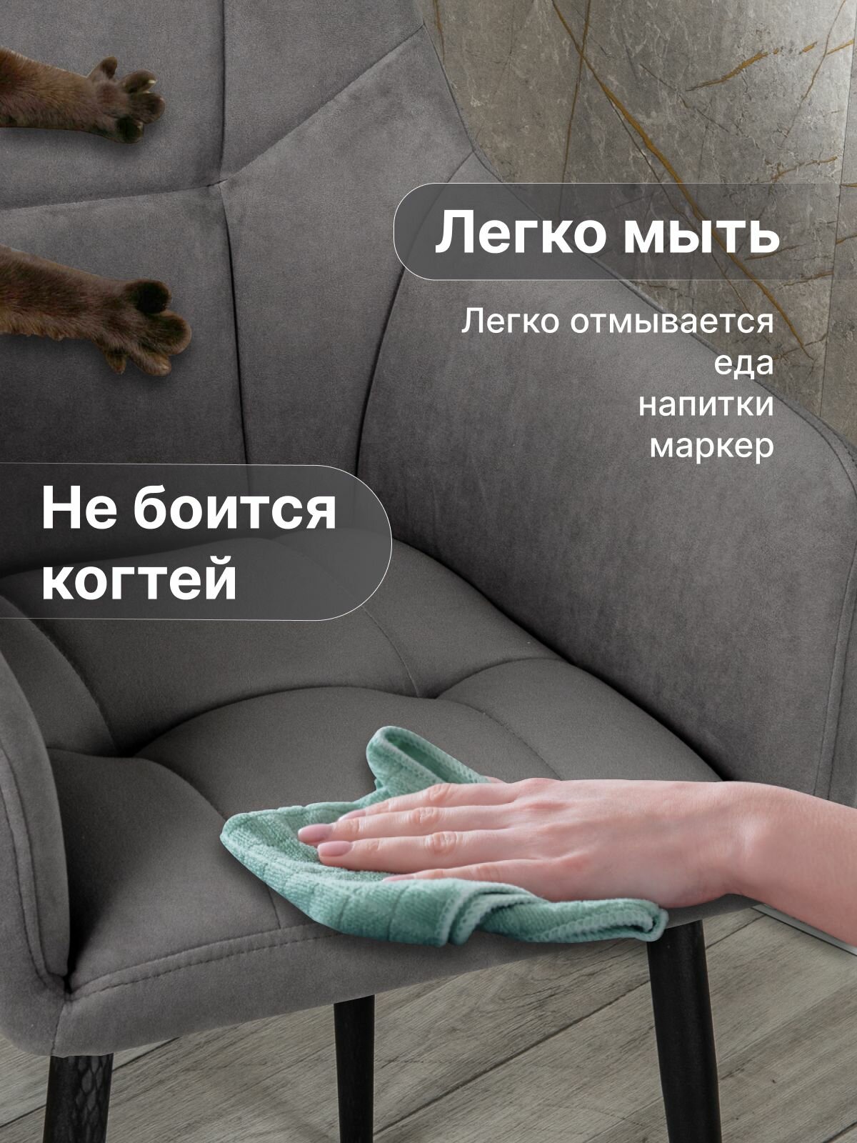Стулья для кухни со спинкой 2 шт «Кинг», У Стулыча, антивандальный велюр, металлокаркас, серый, черные ножки 15 400 ₽