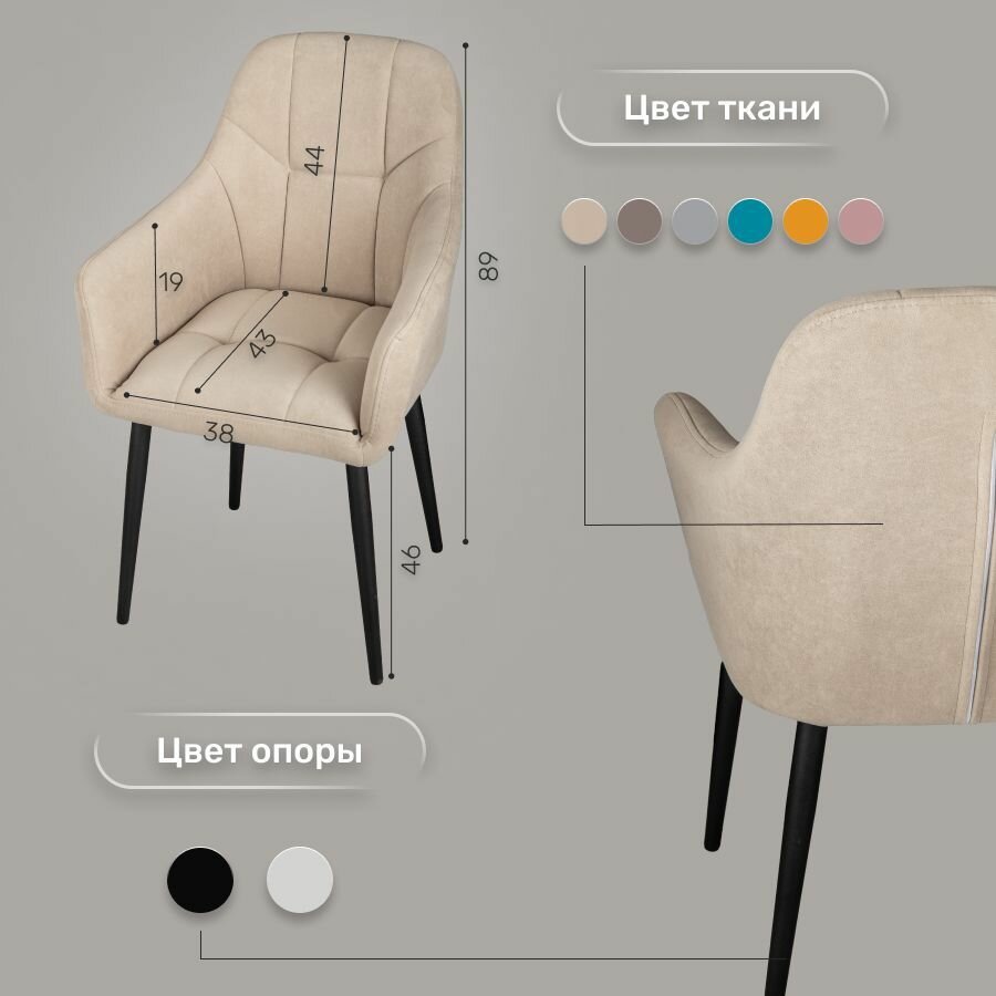 Отзывы на Стулья для кухни со спинкой 2 шт «Кинг», У Стулыча, антивандальный велюр, металлокаркас, бежевый, черные ножки