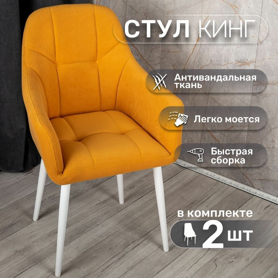 10 цен на Стулья для кухни со спинкой 2 шт «Кинг», У Стулыча, антивандальный велюр, металлокаркас, желтый, белые ножки