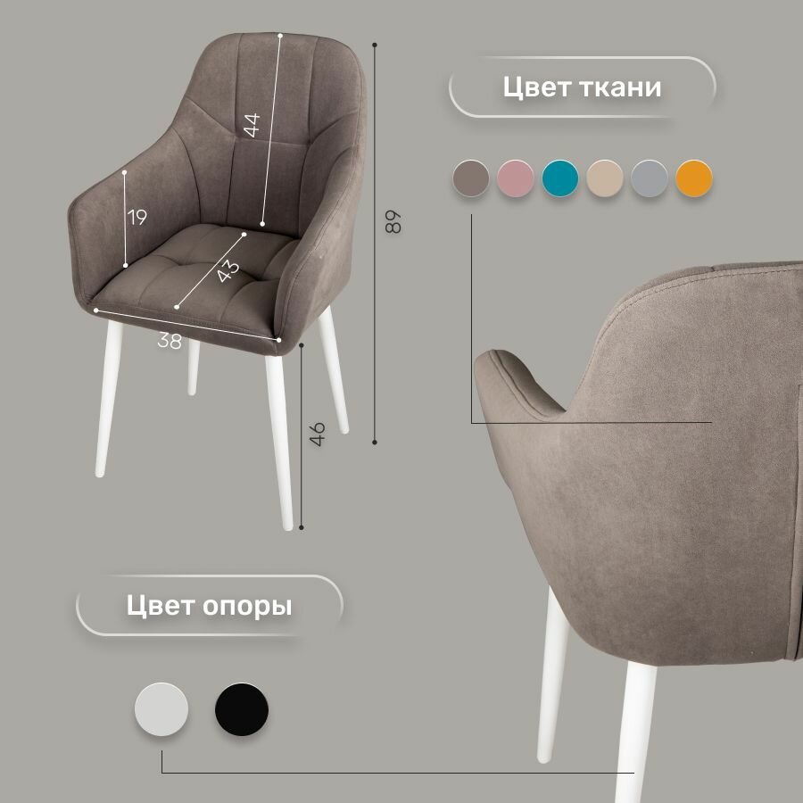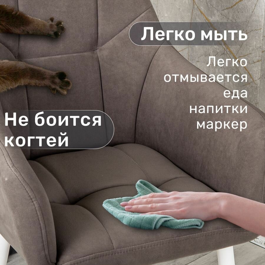 Отзывы на Стулья для кухни со спинкой 2 шт «Кинг», У Стулыча, антивандальный велюр, металлокаркас, серо-коричневый, белые ножки