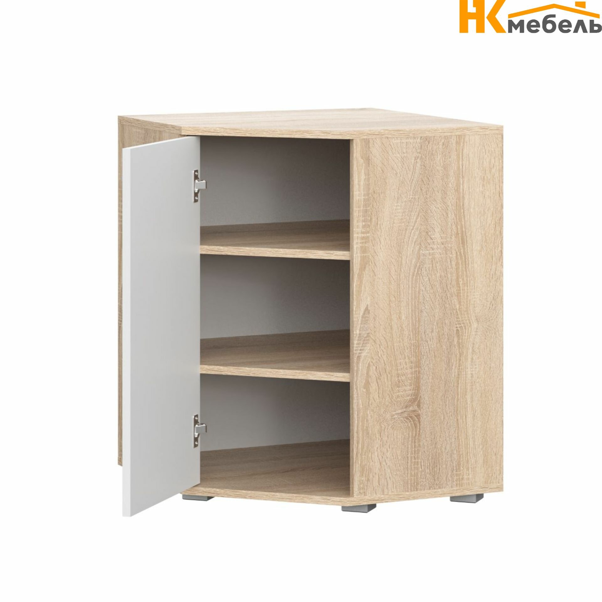 Комод угловой FUN КД 5, комод деревянный с распашными дверцами и ящиками, Белый/Дуб Сонома, 580x580x740мм (ШхГхВ)