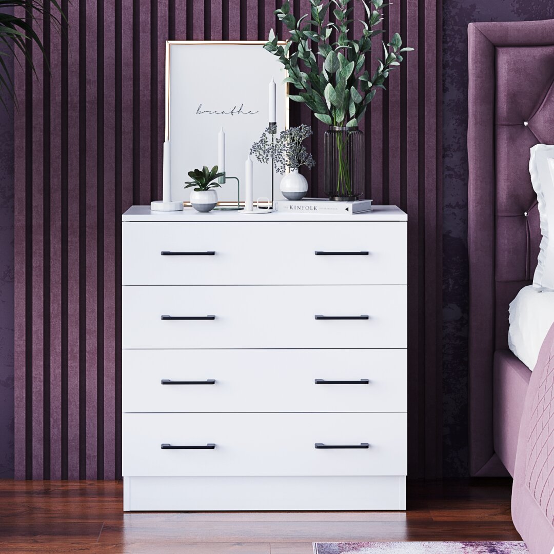 10 цен на Комод белый с четырьмя ящиками и ручками, 77х73,4х32,9 см