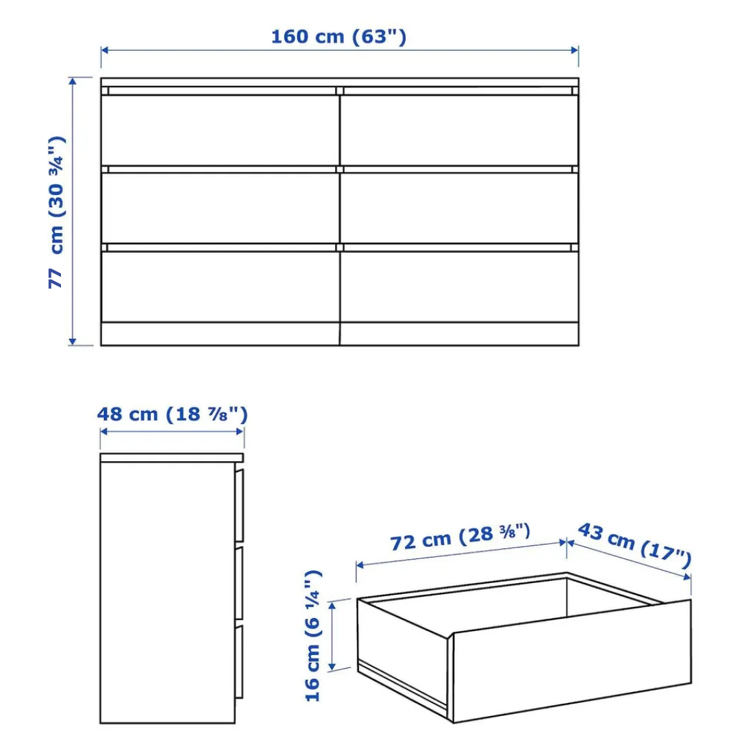 Отзывы на Комод с ящиками для одежды, серый, PLATS 160, 6 ящиков,160х48х78 см