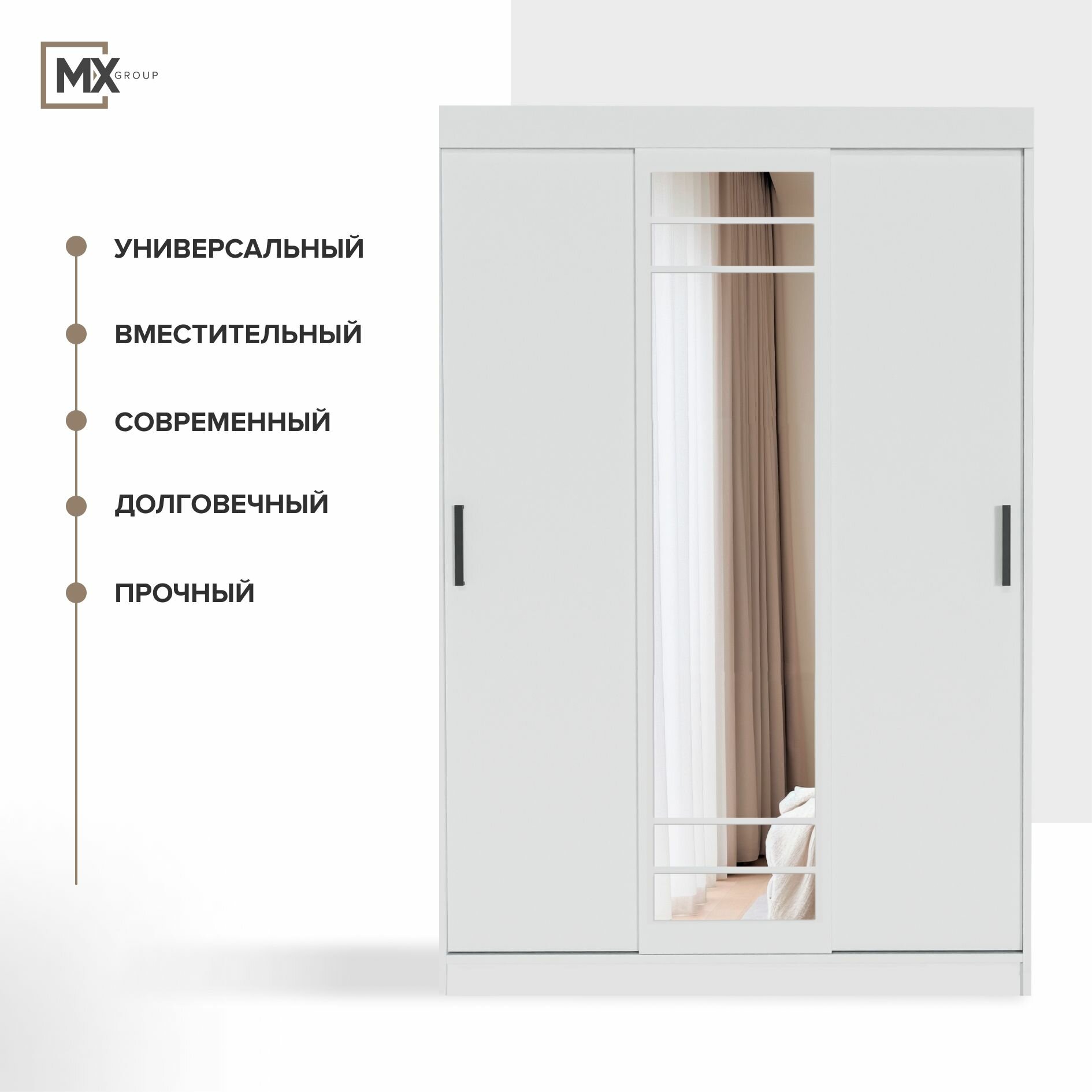 Шкаф-Купе Тайм-3/Тео/Бассо/ Бруно Белый, ЛДСП, с зеркалом, полками, штангами, для прихожей, спальни, гостиной 1310х2000х500 ЭРА информация: