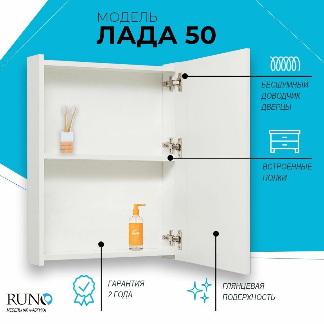 Шкаф в ванную с зеркалом Runo Лада 50, белый информация: