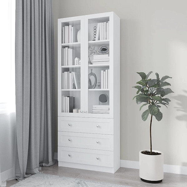 10 цен на Шкаф книжный Билли 39, 80х30х202 см, Белый ЛДСП/рамка МДФ/стекло