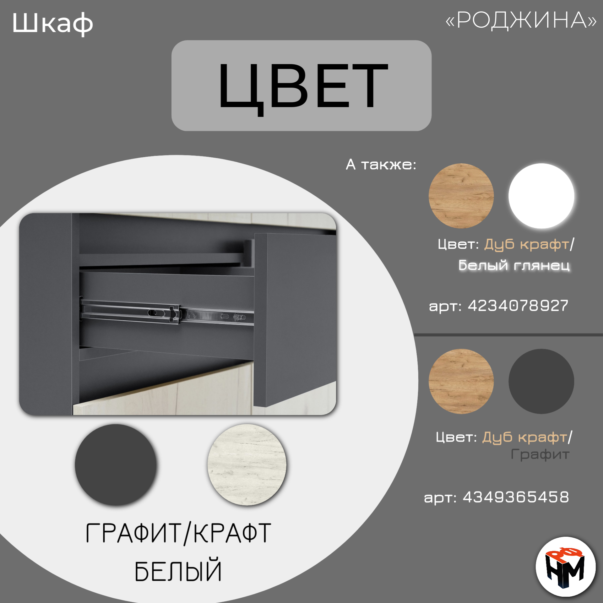 Шкаф распашной Роджина 4-створчатый с ящиками, ЛДСП "Графит, Дуб Крафт белый" 32 046 ₽