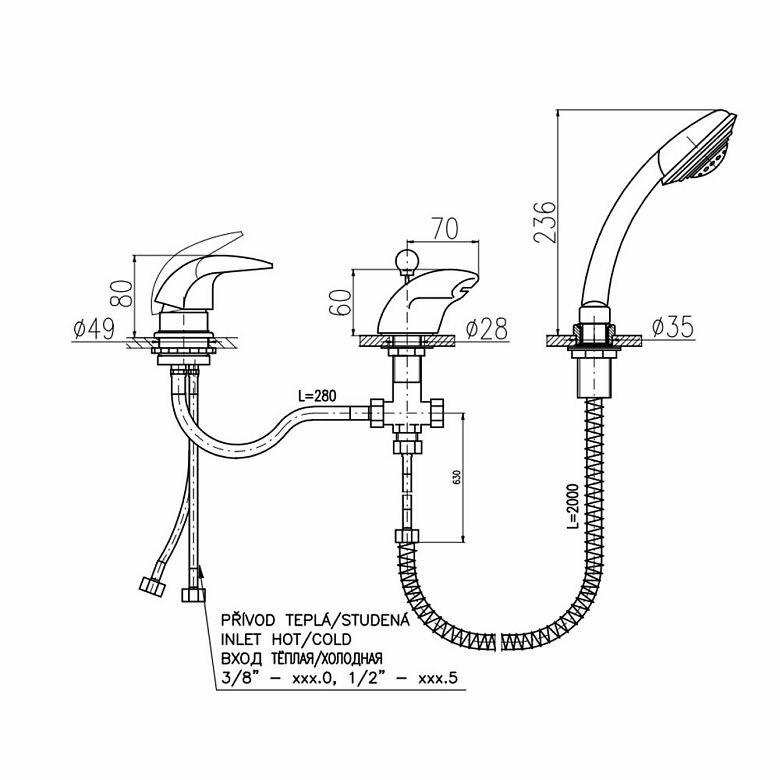 Смеситель на борт ванны Rav Slezak Dunaj D470.5S информация: