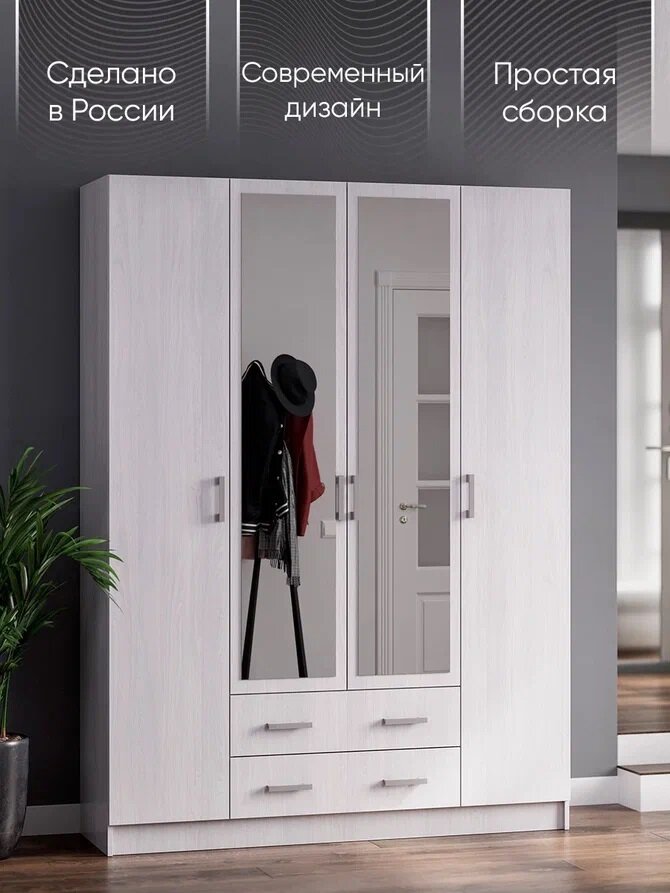 Гармония шкаф 4х створчатый с ящиками