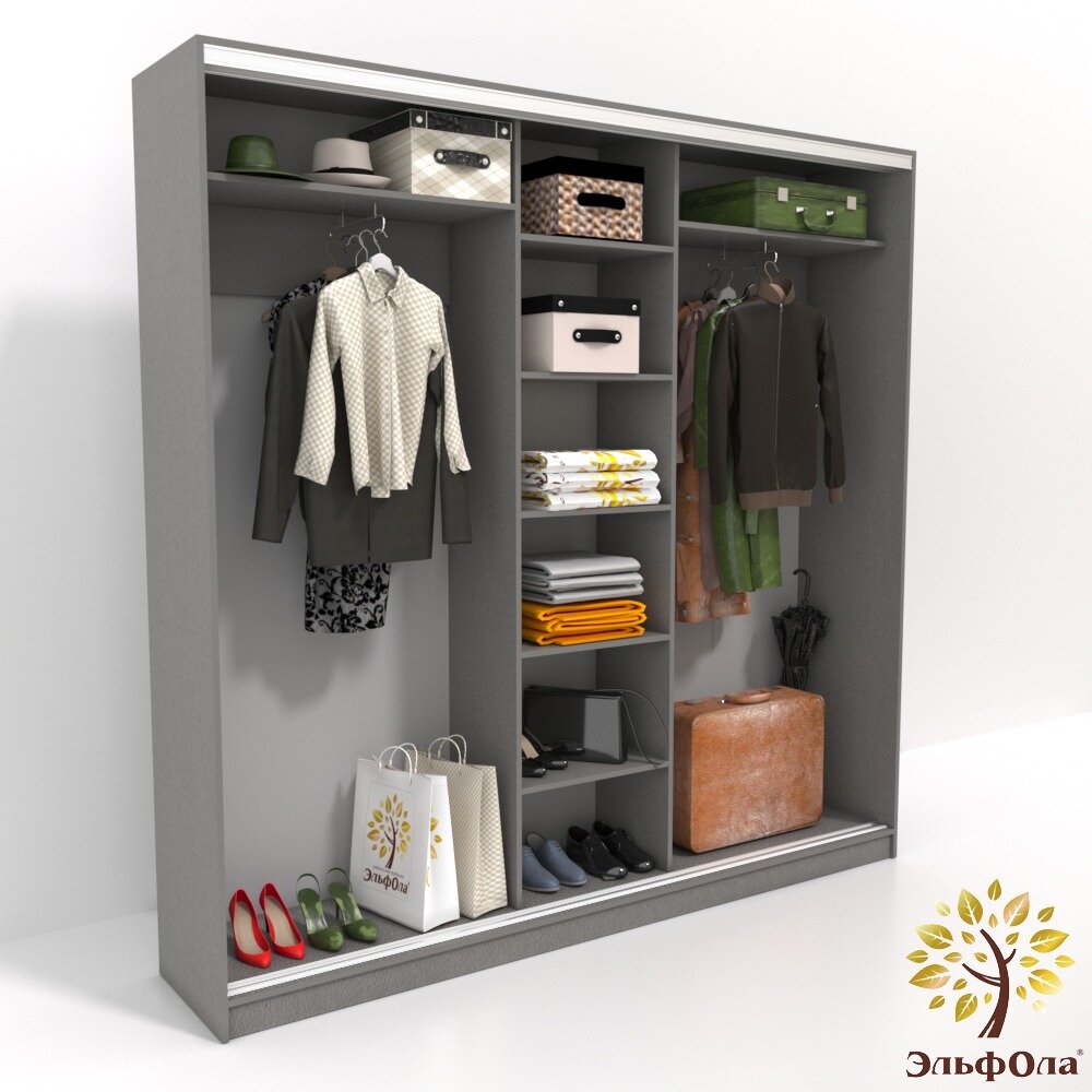 10 цен на Шкаф-купе ЭльфОла "Элеганс" трехстворчатый 223х45х220 см, серый шифер