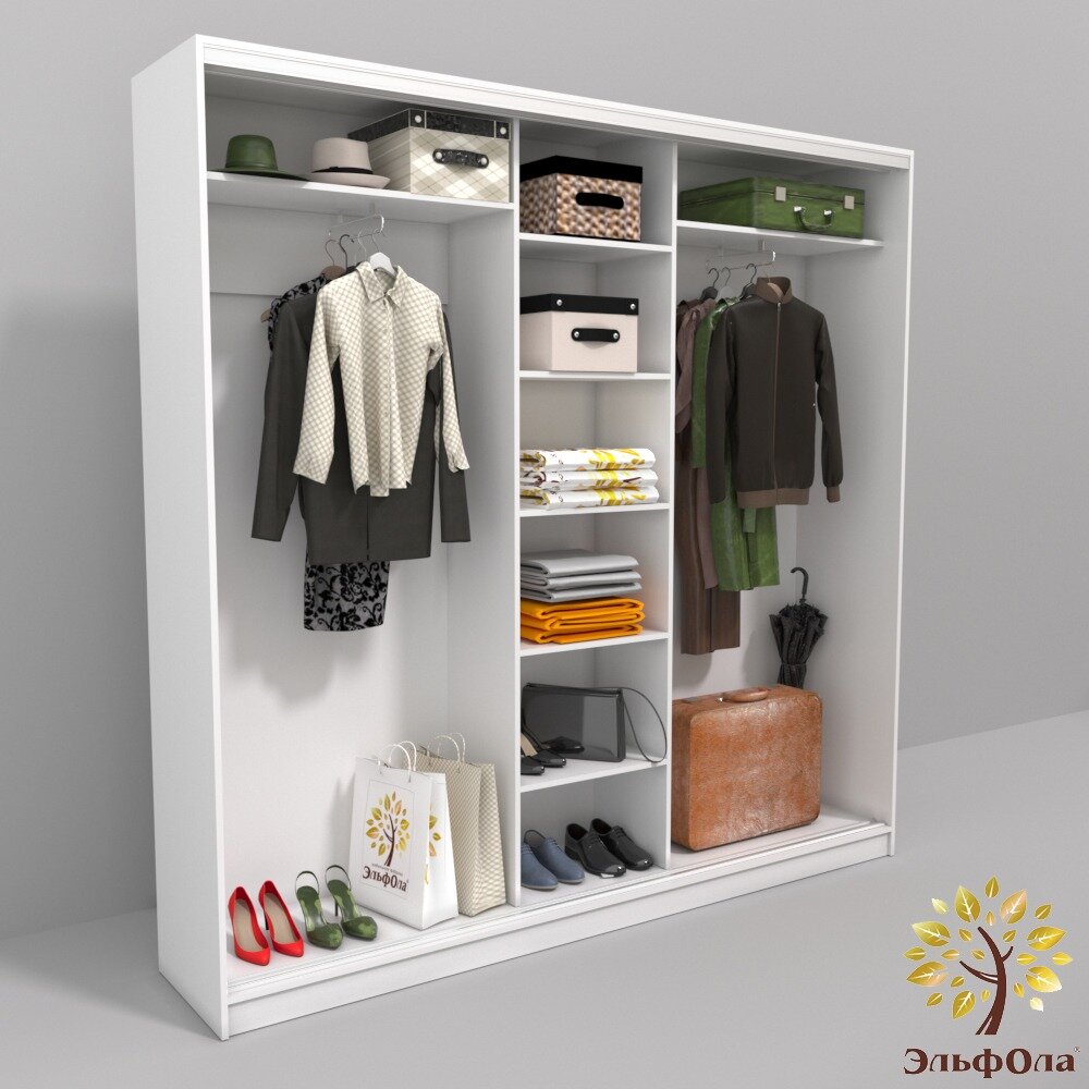 Шкаф-купе ЭльфОла "Элеганс" трехстворчатый 223х45х220 см, белый информация: