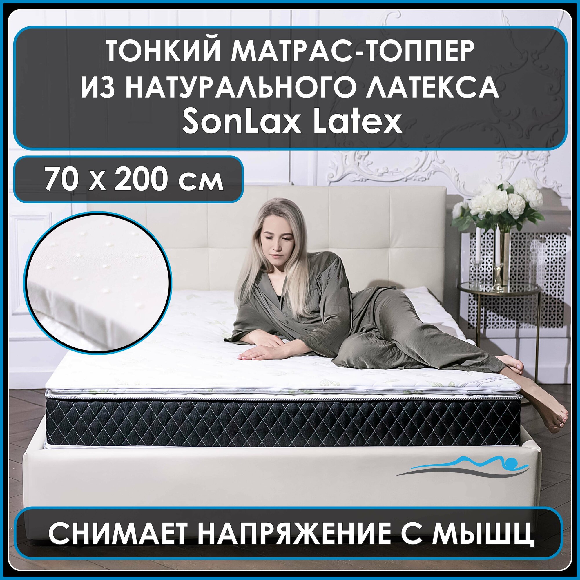 Отзывы на Анатомический тонкий матрас-топпер из натурального латекса для дивана, кровати, фиксирующийся на резинках Latex 70*200