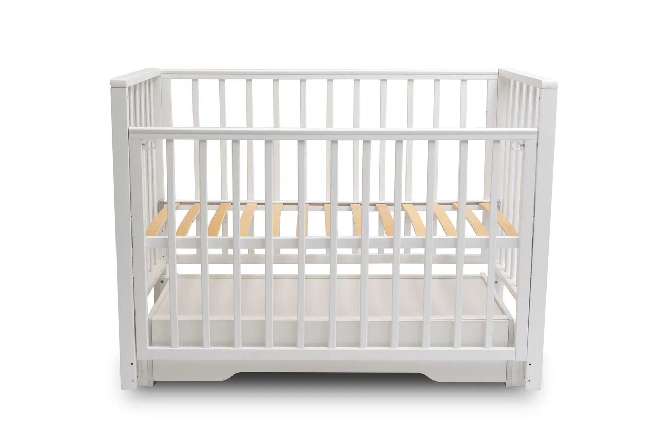 Кроватка детская трансформер для новорожденного Indigo Омега 6 в 1 с поперечным маятником, массив березы, белый