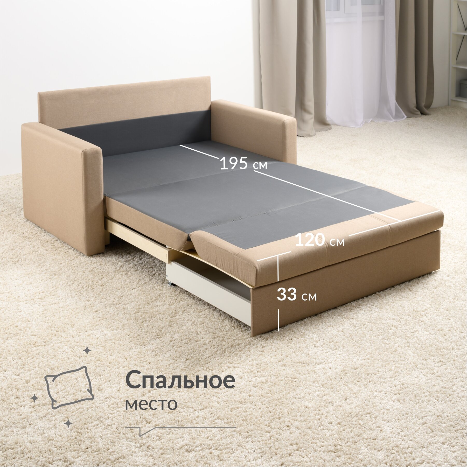 | Особенности | раскладная конструкция, с подлокотниками, ящик для белья |