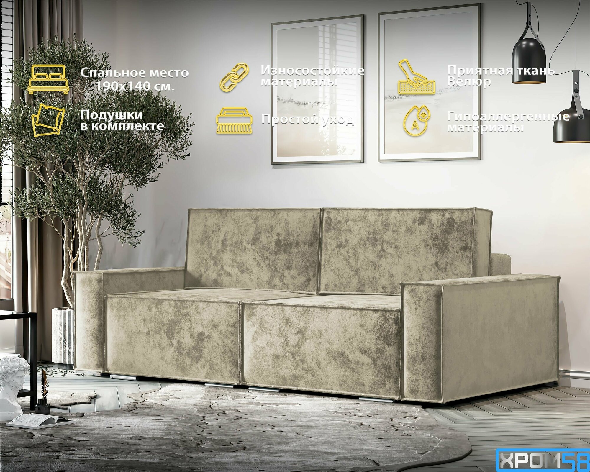 Отзывы на Диван раскладной, диван кровать Лофт Тик-Так велюр светло-коричневый 234х105х94