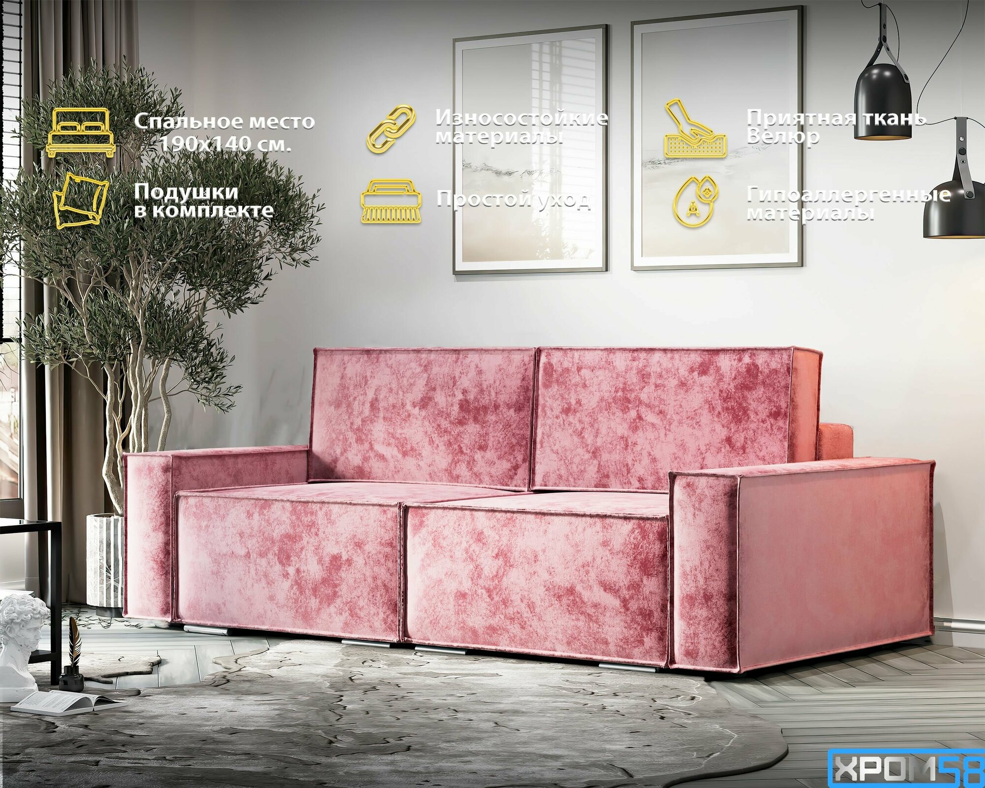 Отзывы на Диван раскладной, диван кровать Лофт Тик-Так велюр розовый 234х105х94