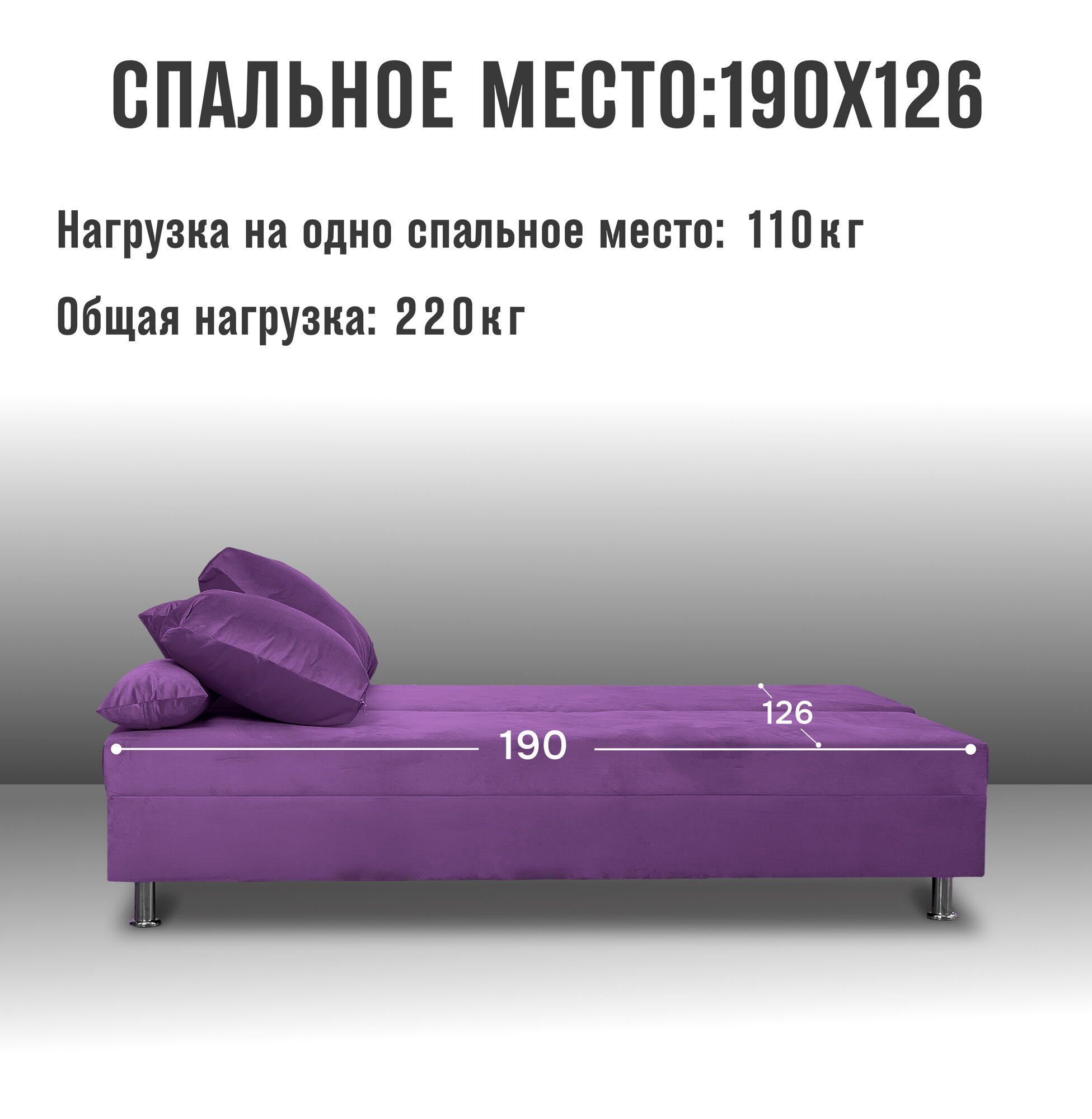 10 цен на Раскладной диван кровать Токио, механизм еврокнижка, 190х73х73 см, фиолетовый, прямой диванчик с ящиком для хранения