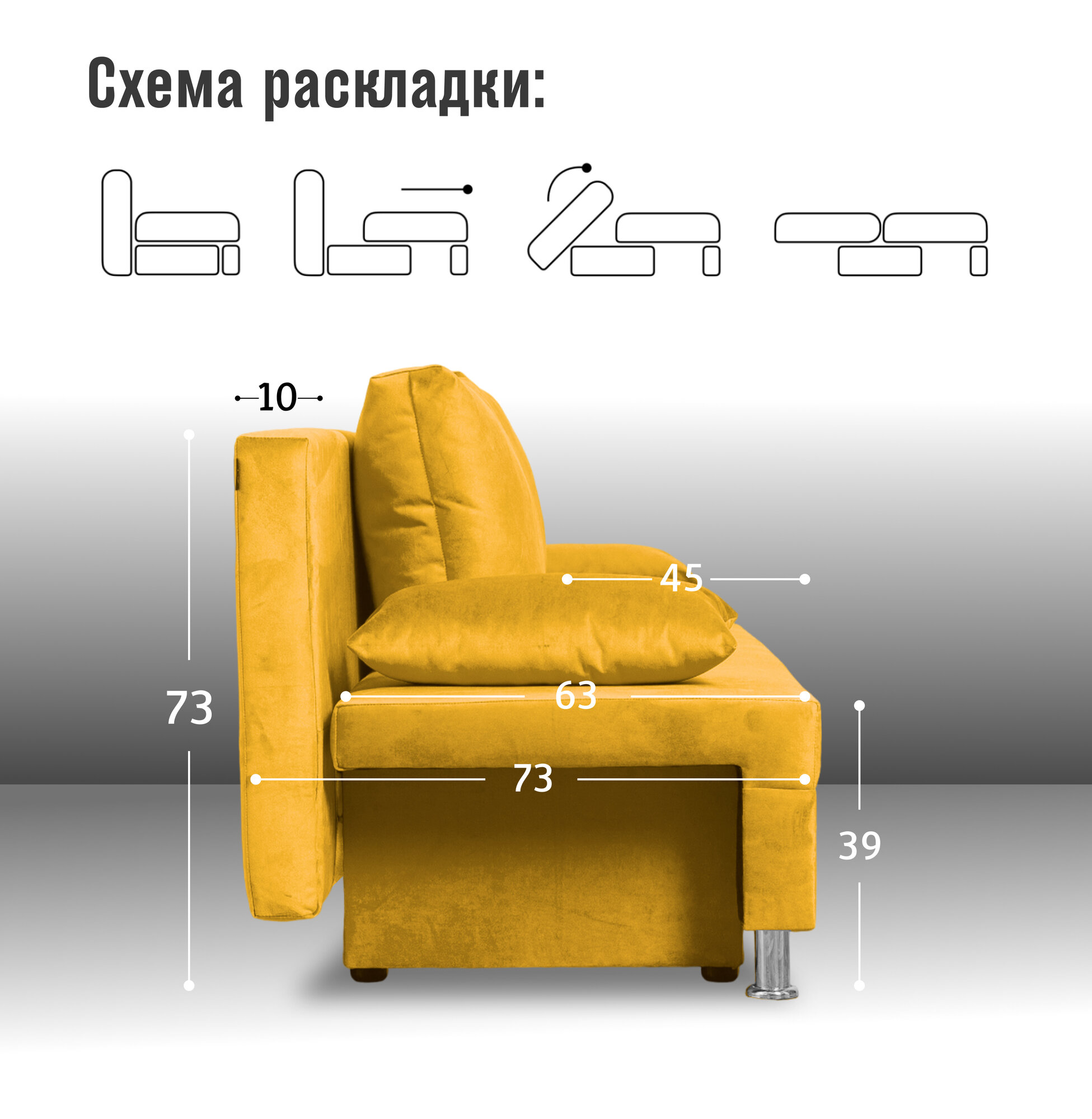 10 цен на Раскладной диван кровать Токио, механизм еврокнижка, 190х73х73 см, горчичный, прямой диванчик с ящиком для хранения