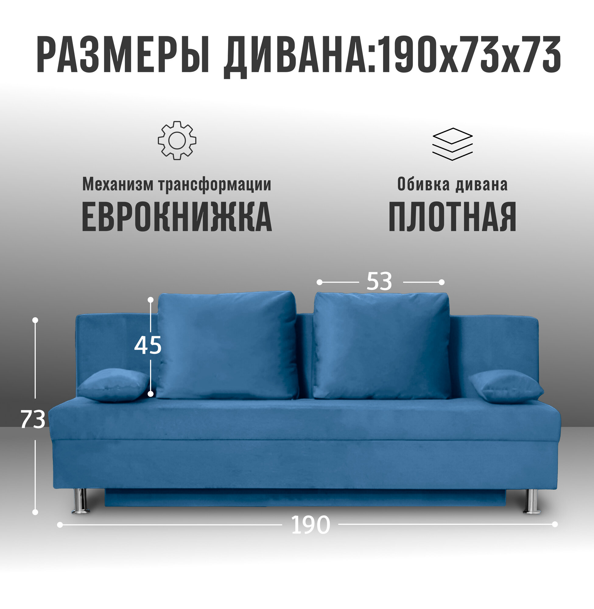 Отзывы на Раскладной диван кровать Токио, механизм еврокнижка, 190х73х73 см, синий, прямой диванчик с ящиком для хранения