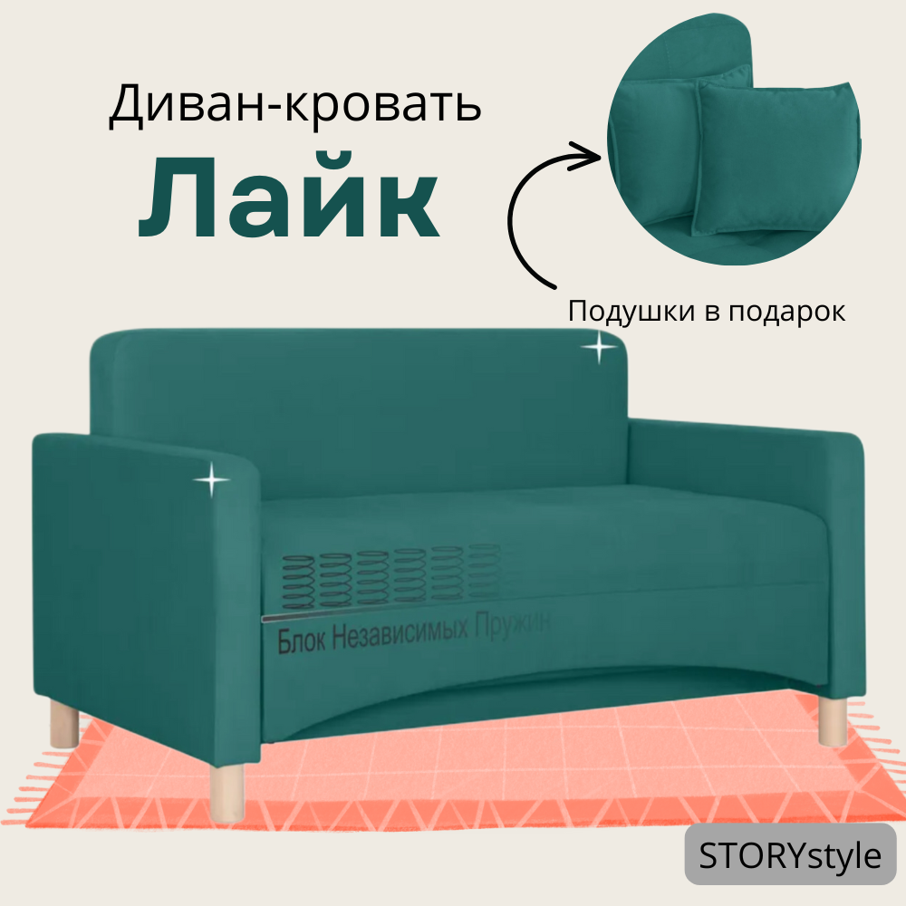 10 цен на Диван-кровать Лайк, 140*85*80, спальное 120*200, велюр лазурный, Велутто 20