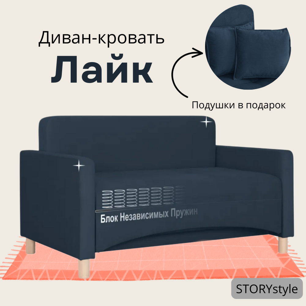 10 цен на Диван-кровать Лайк, 140*85*80, спальное 120*200, велюр синий, Велутто 26