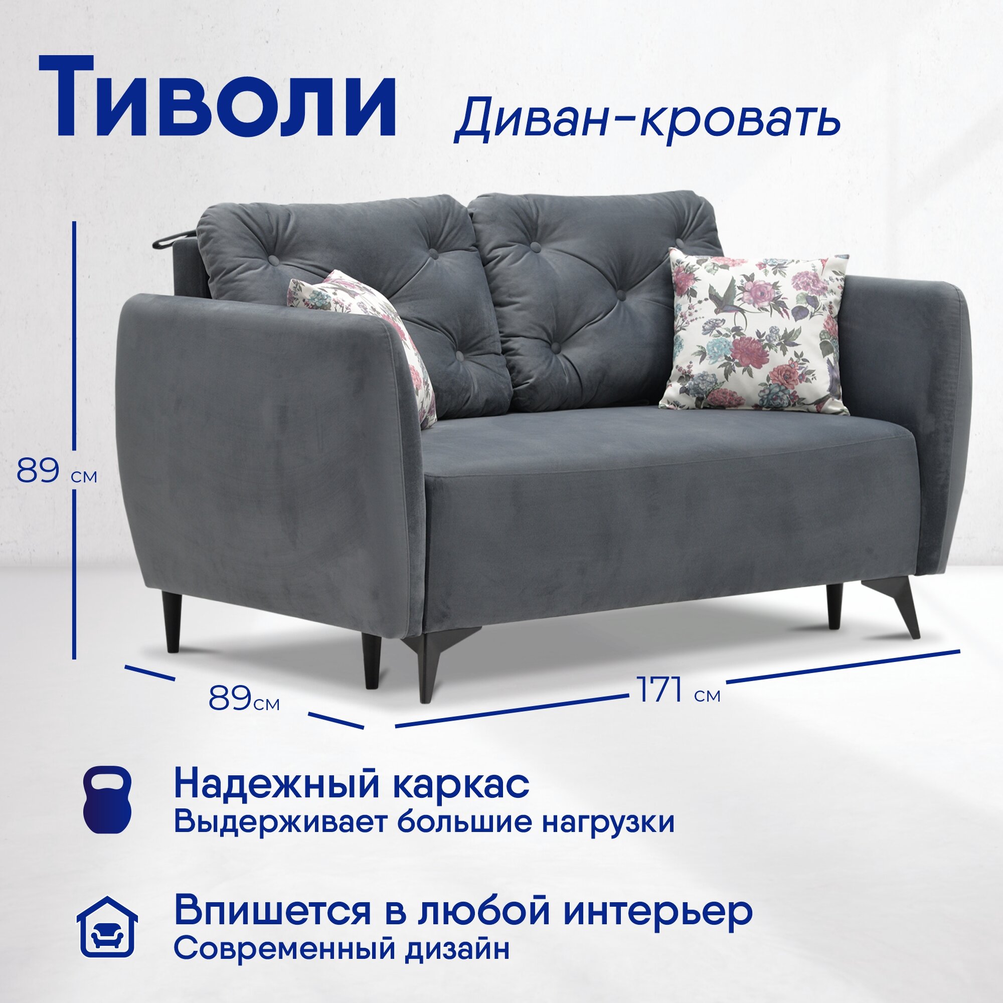 Отзывы на Диван Тиволи размер: 171х89х89см, спальное место: 141х190см, Ultra Grey, Garden Lilac