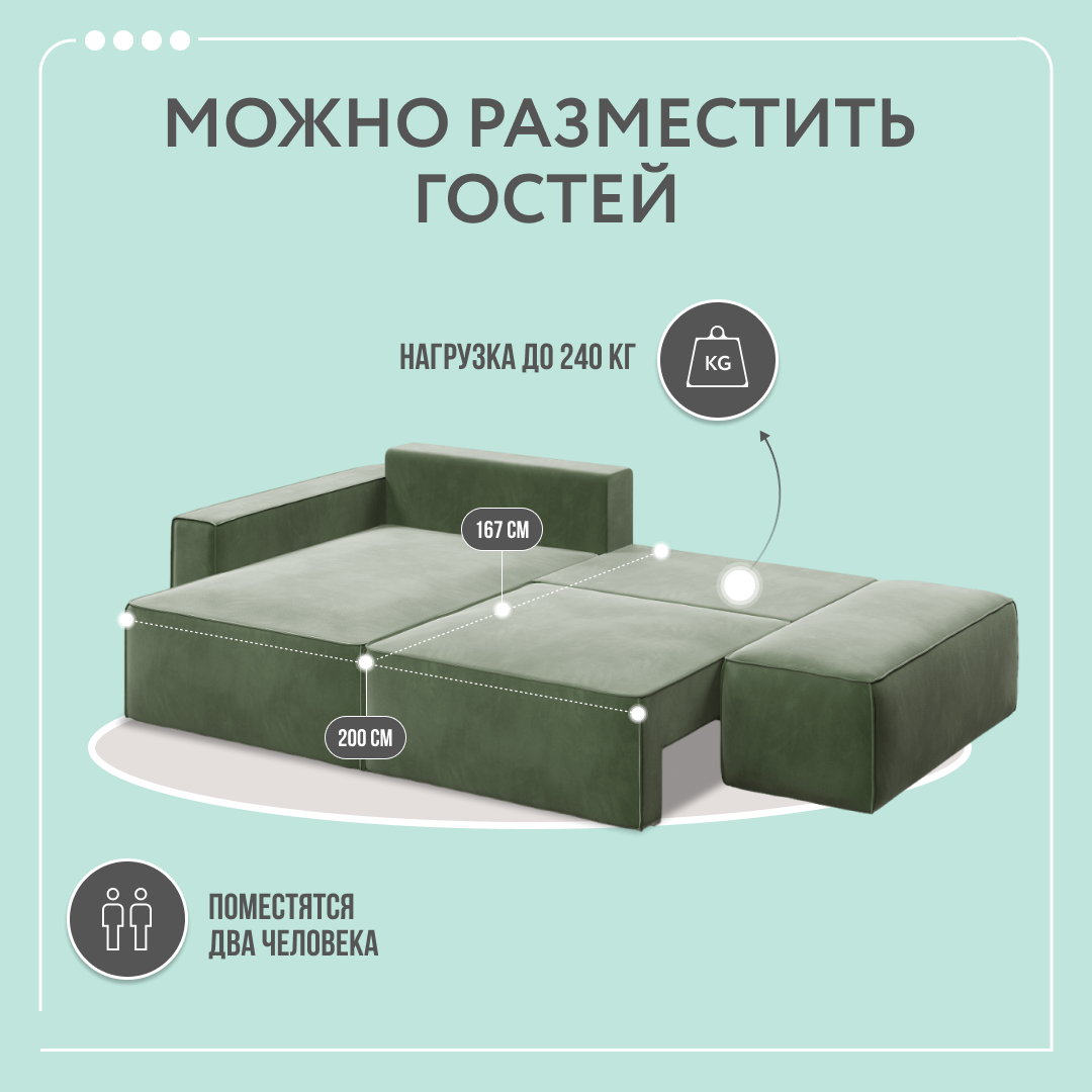 Отзывы на Угловой тканевый диван с банкеткой Dee One Корсо зелёный 269x176x80