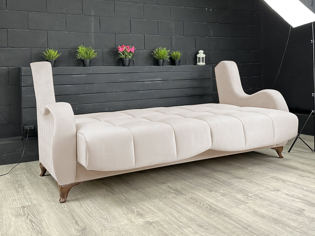 Диван раскладной Флоренция Велюр бежевый / ножки - коричневые Djivani 41 429 ₽