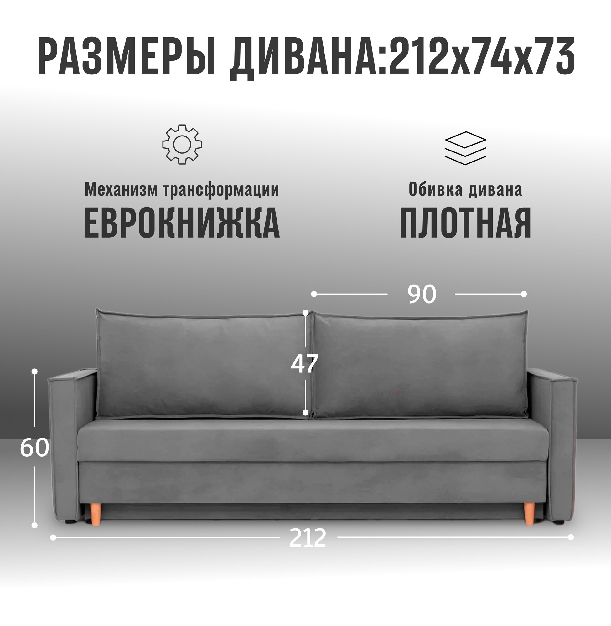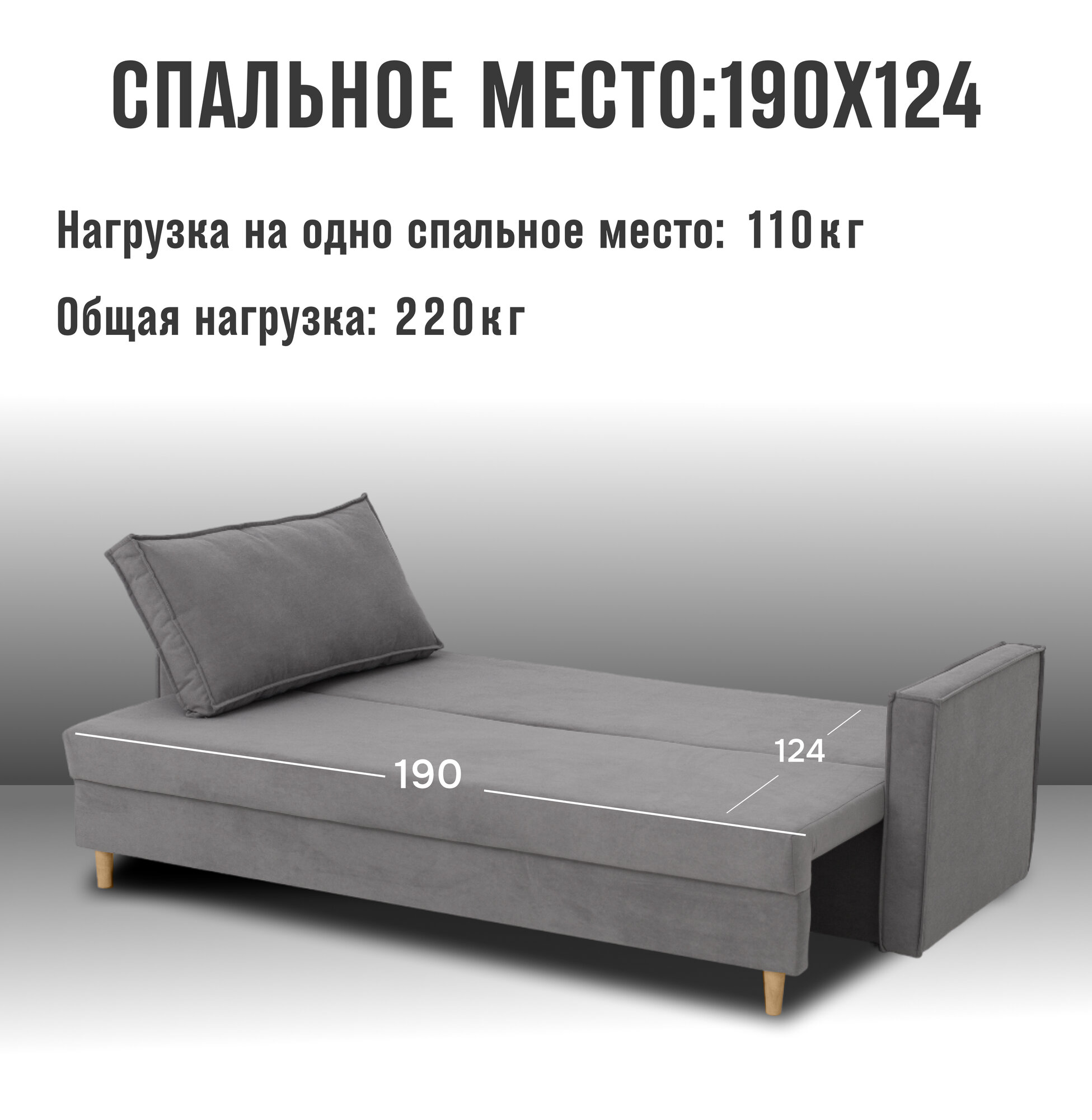Диван - кровать прямой Виго Лайт, механизм еврокнижка, 212 х 74 х 73 см, Серый информация: