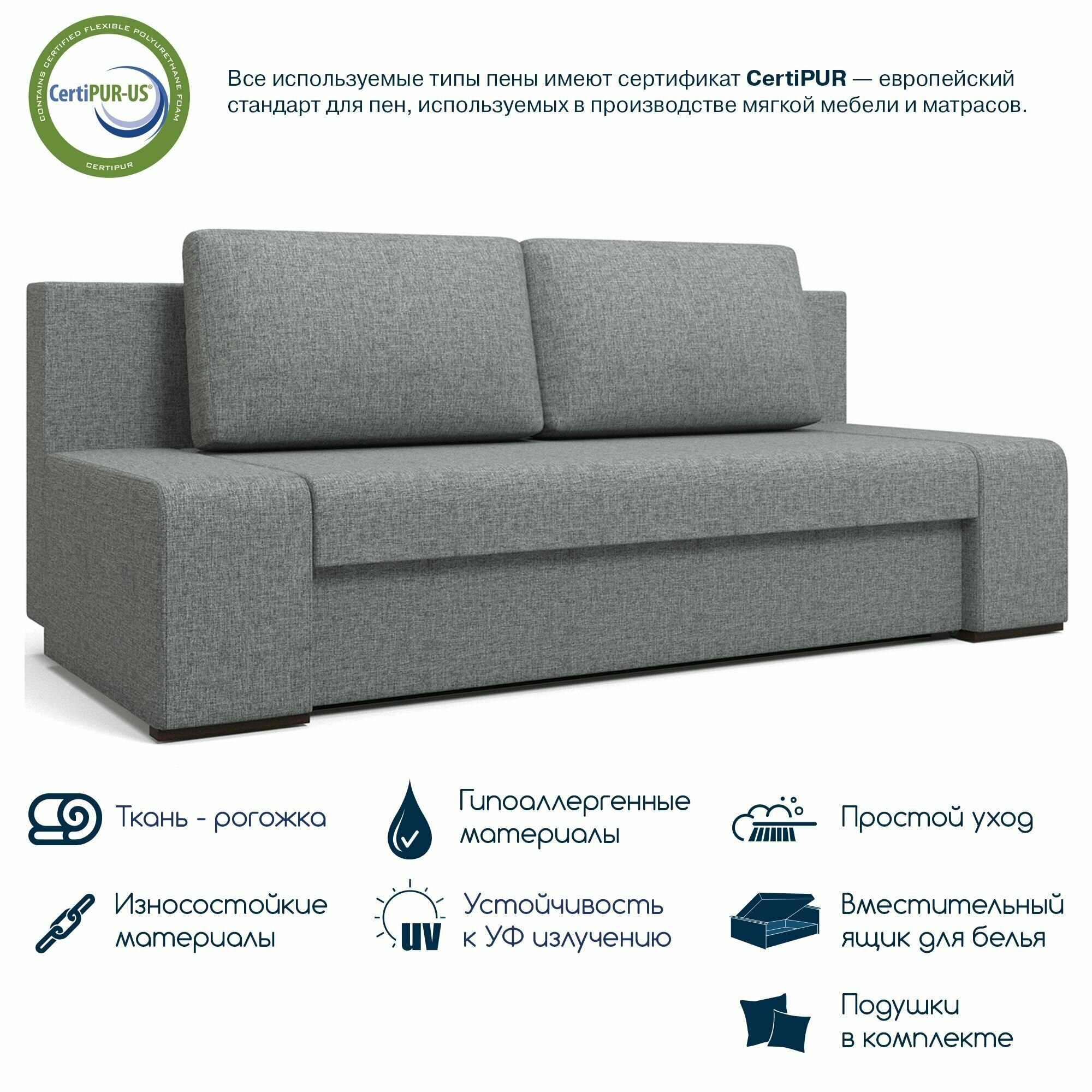 Диван кровать прямой Beneli мадейра раскладной, без подлокотников, серый, Рогожка, механизм Еврокнижка, 208,5х91х80см, 1шт информация: