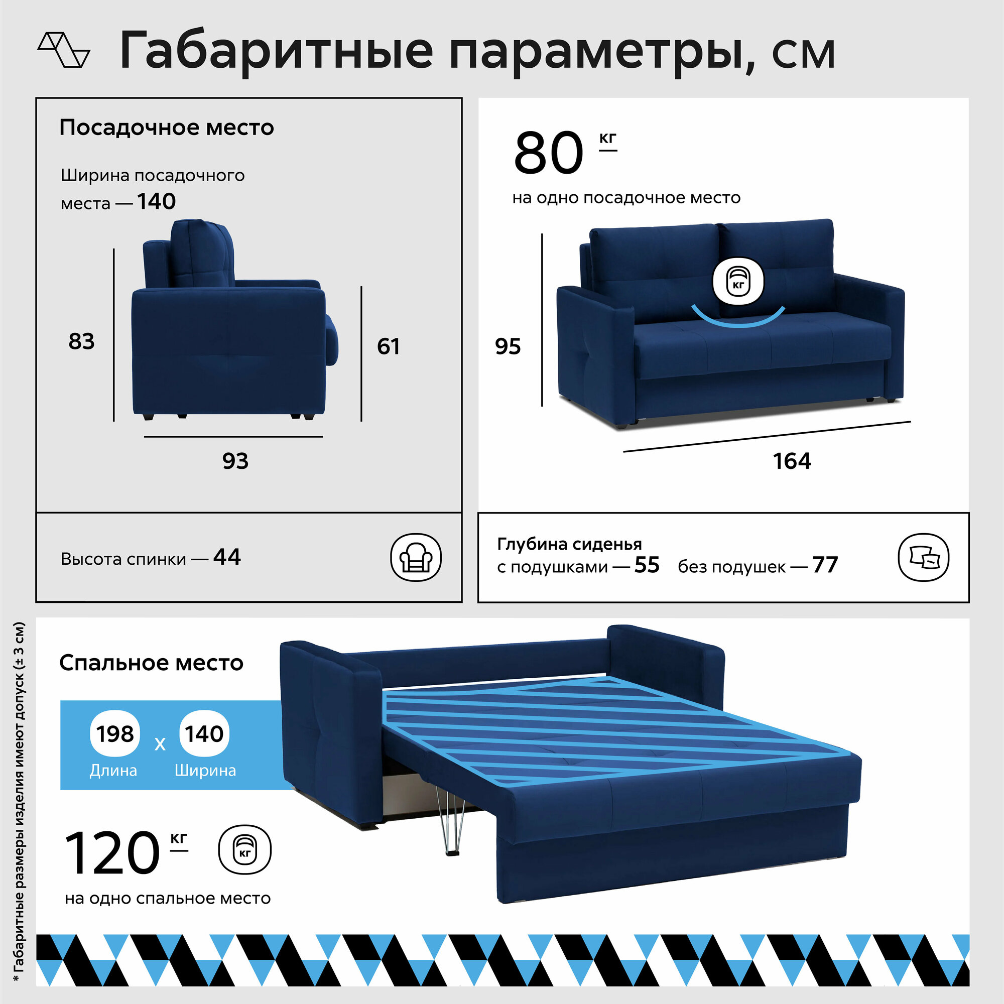 Диван раскладной двухместный Нонтон Вита, пантограф, темно-синий, 164 см 39 490 ₽