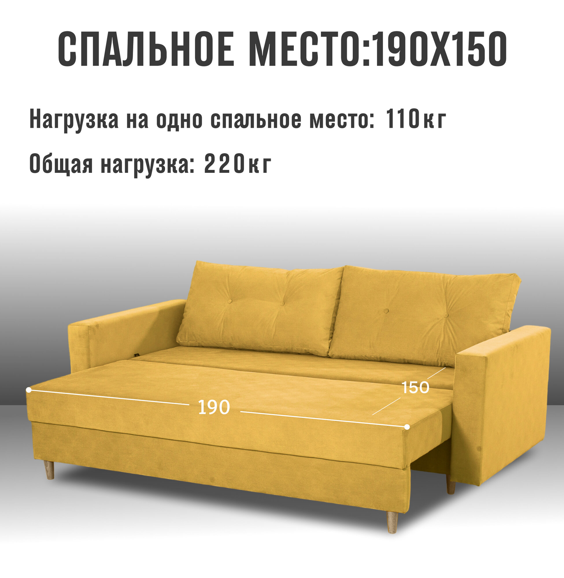 Раскладной диван кровать Киото прямой, механизм еврокнижка, 220х96х85 см, горчичный, диванчик на ножках с ящиком для хранения информация: