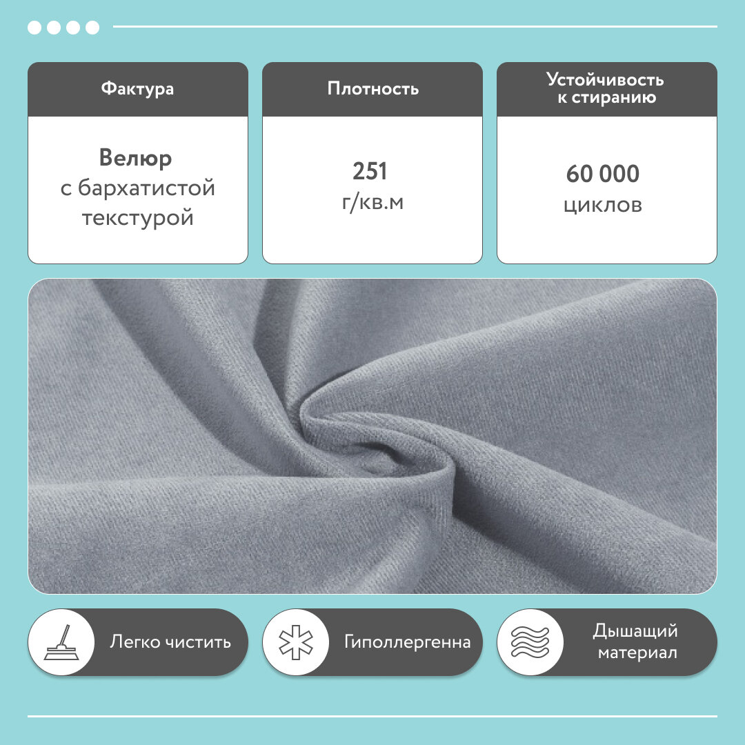Диван-кровать раскладной угловой Корсо Лайт, еврокнижка, велюр, серый, 195х130х76 33 589 ₽
