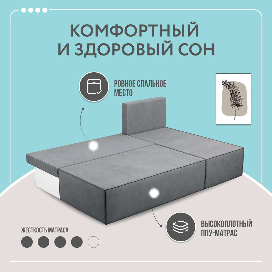 Диван-кровать Dee One раскладной угловой Корсо Лайт, еврокнижка, велюр, 187х87х76, с ящиком, серый 25 475 ₽